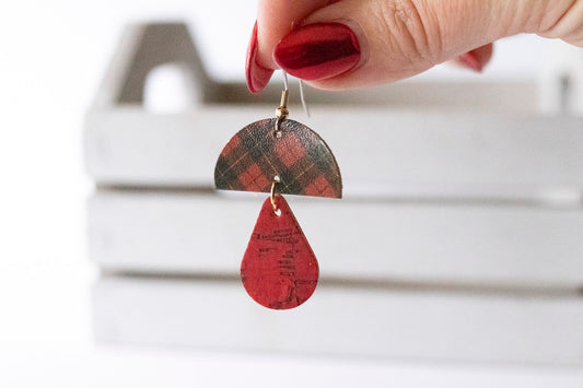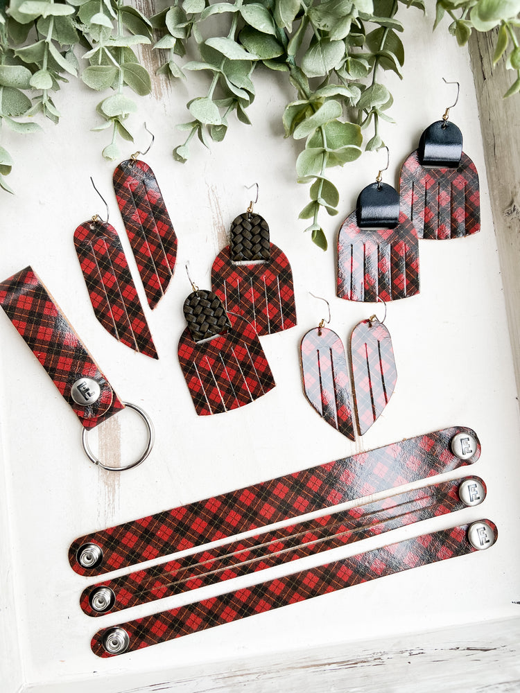 Leather Earrings / Fringies / Tartan & Smooth Pine