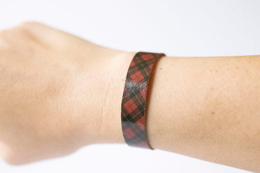 Leather Bracelet / Skinny Slim Cuff / Tartan