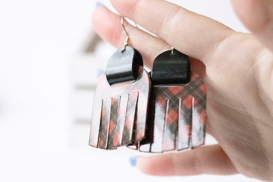 Leather Earrings / Fringies / Tartan & Metallic Black