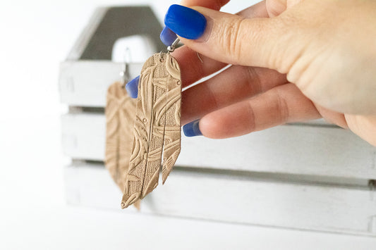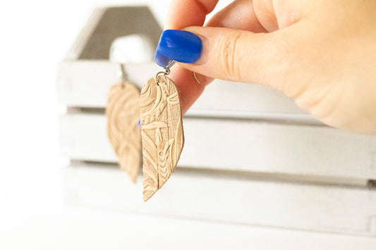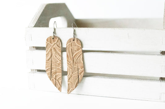 Leather Earrings / Fringies / Western Floral & Rose Latte