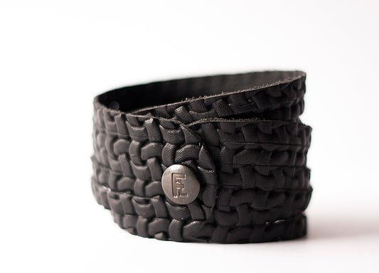 Leather Bracelet / Original Sliced Wrap Cuff / Woven Black