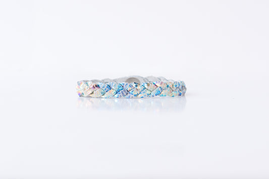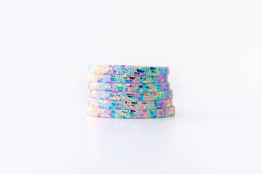 Leather Bracelet / Ultra Skinny Sliced Cuff / Woven Oil Spill