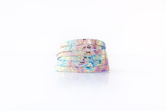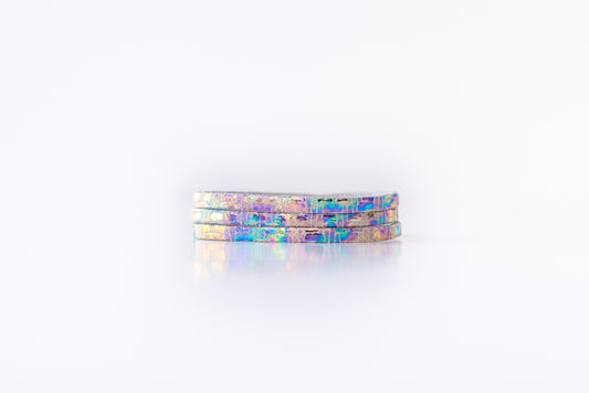 Leather Bracelet / Original Sliced Wrap Cuff / Woven Oil Spill