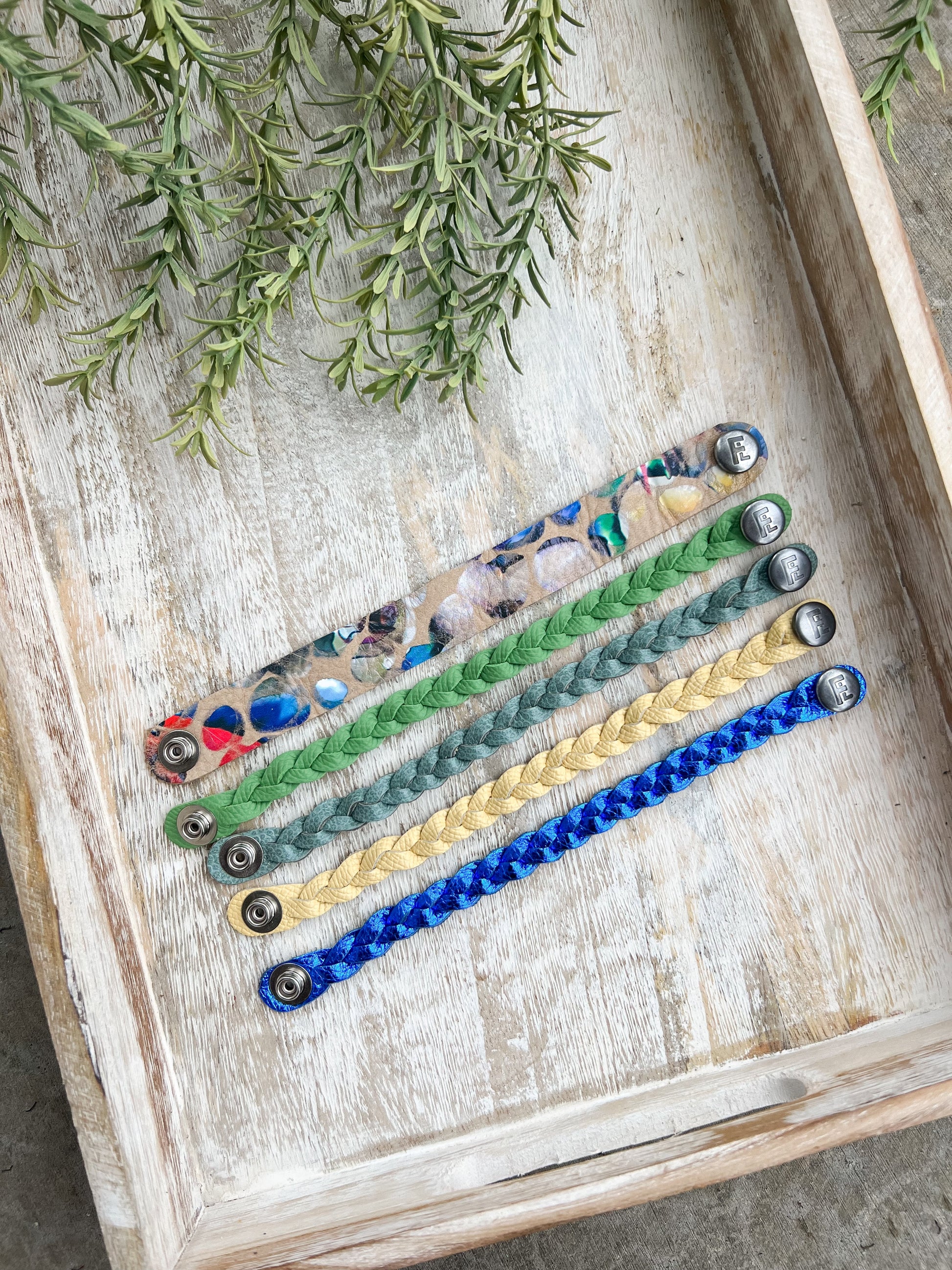 These bracelets will come with a brushed silver FL (Flourish Leather) logo snap.