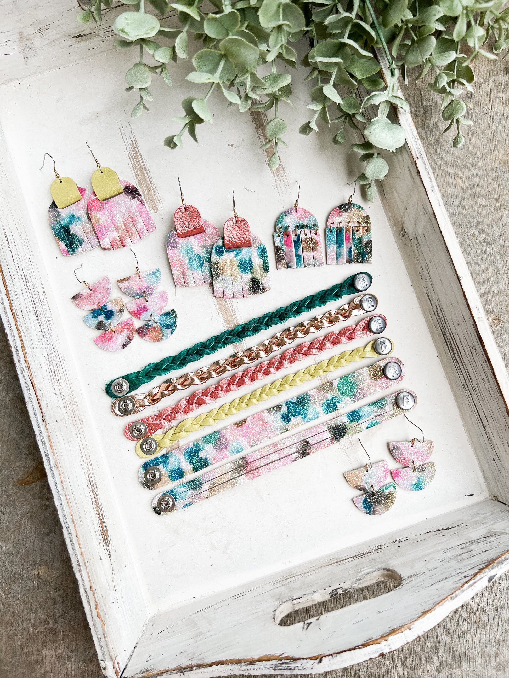 These bracelets will come with a brushed silver FL (Flourish Leather) logo snap.