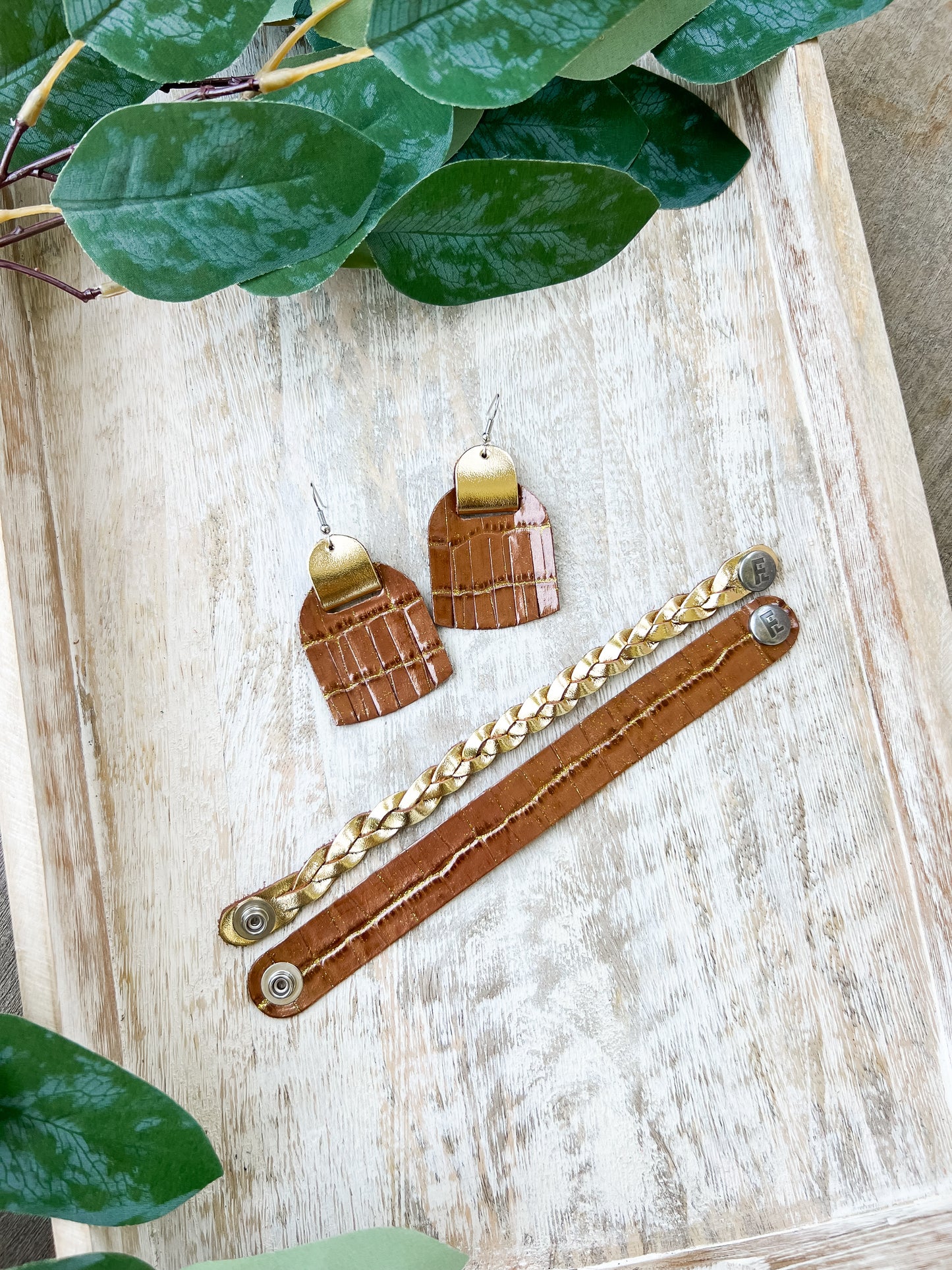 These bracelets will come with a brushed silver FL (Flourish Leather) logo snap.