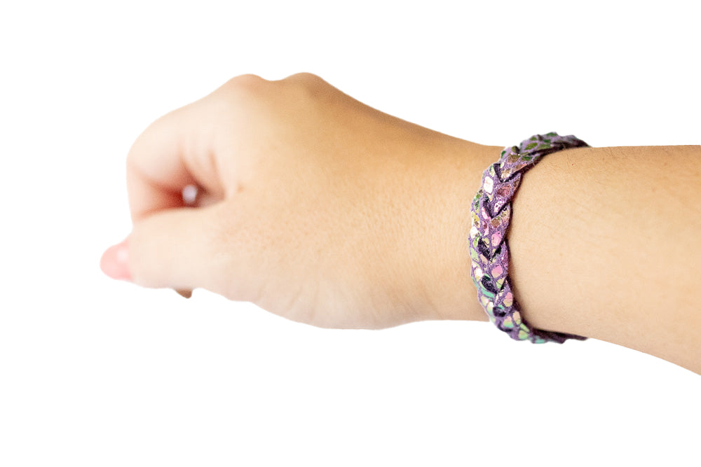 Braided Leather Bracelet / Metallic Rainbow