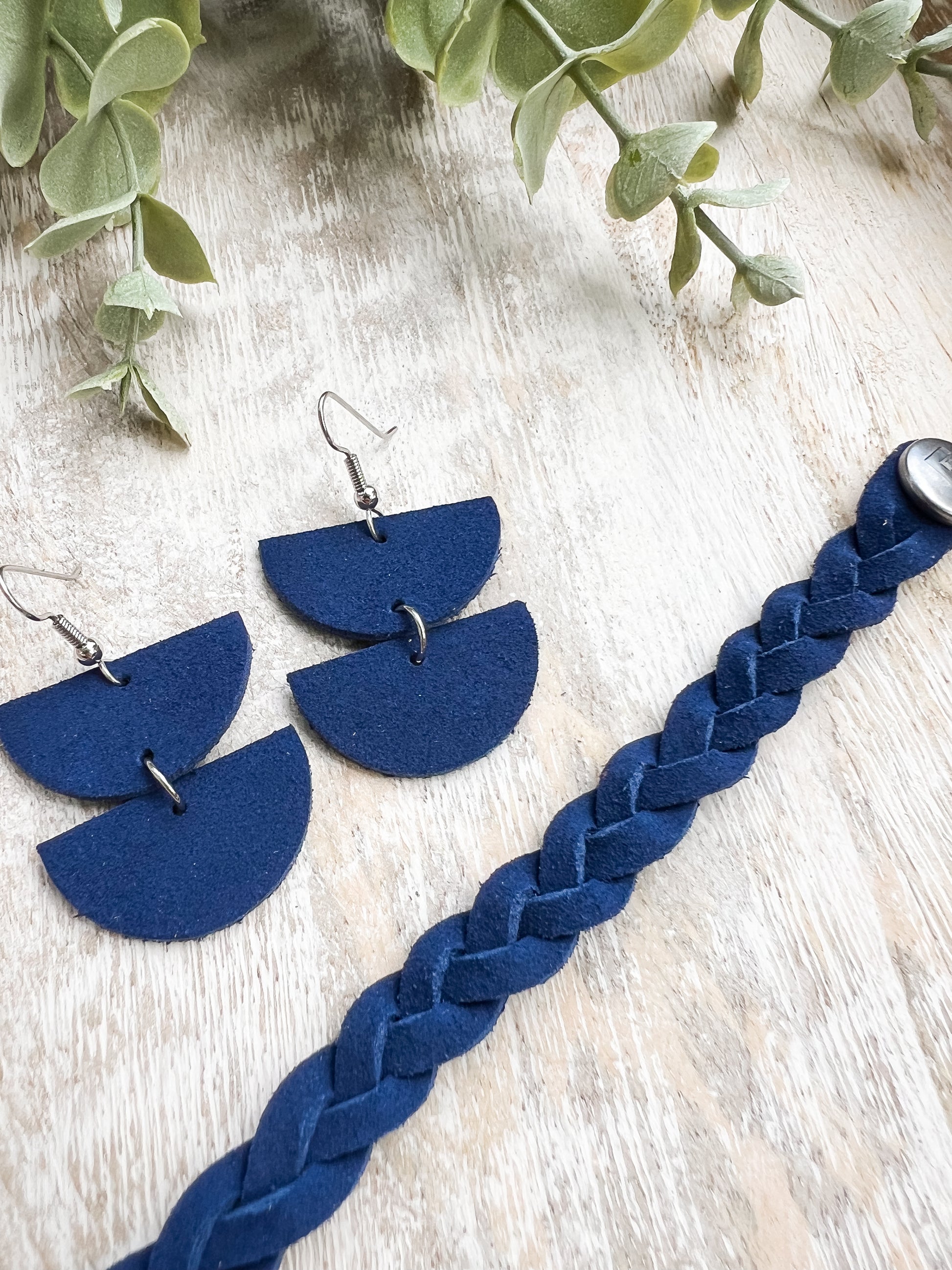 Braided Leather Bracelet / Navy Nubuck