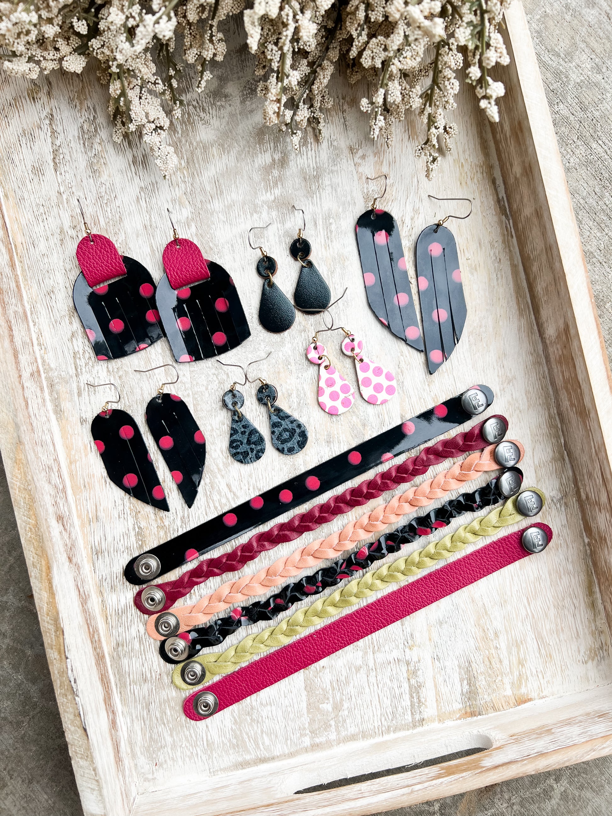 These bracelets will come with a brushed silver FL (Flourish Leather) logo snap.