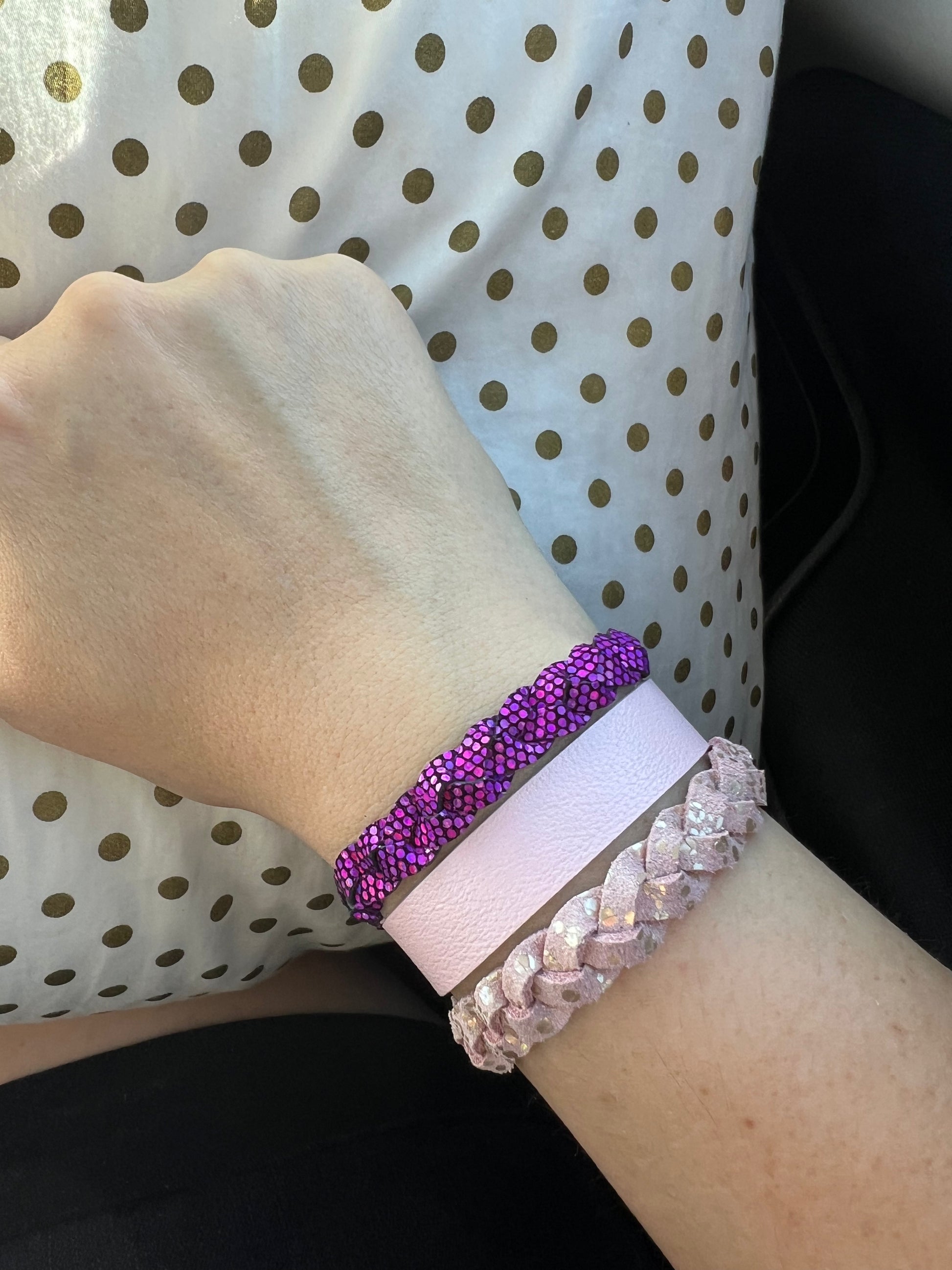 These bracelets will come with a brushed silver FL (Flourish Leather) logo snap.