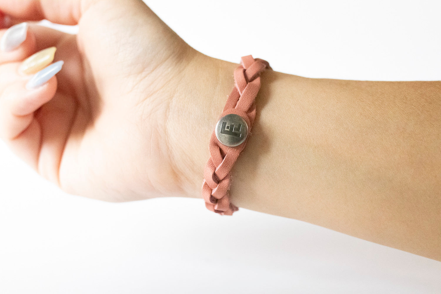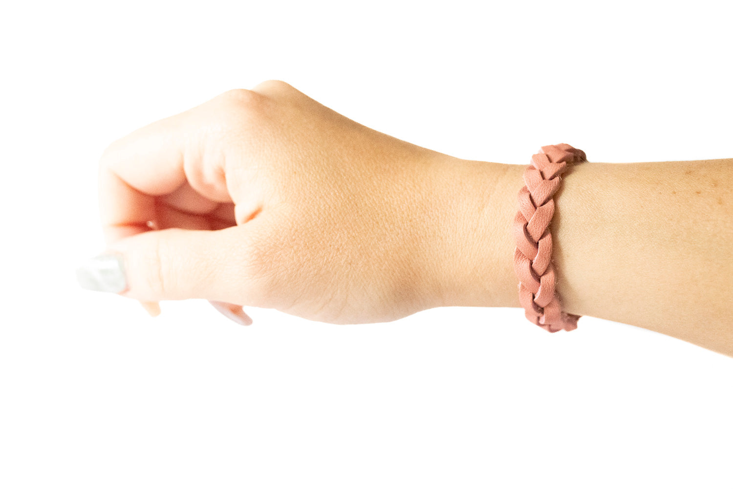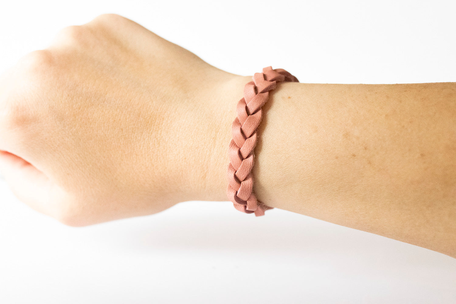 Braided Leather Bracelet / Smooth Rose