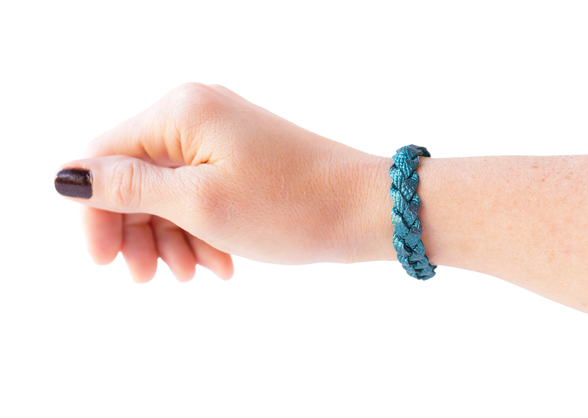 Braided Leather Bracelet / Teal Quartz Shimmer