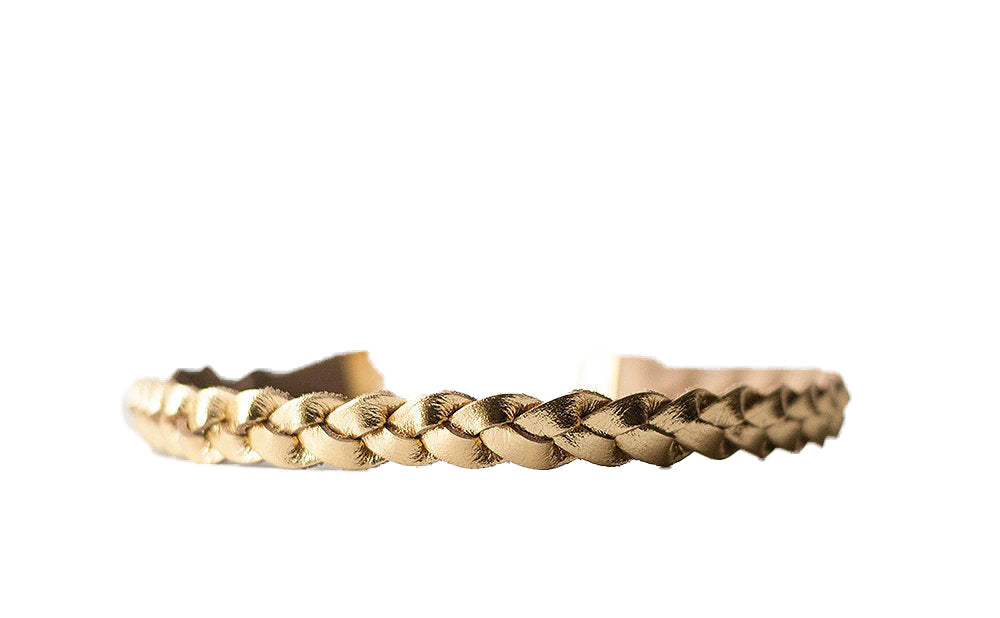 Braided Leather Choker / Necklace / Metallic Gold