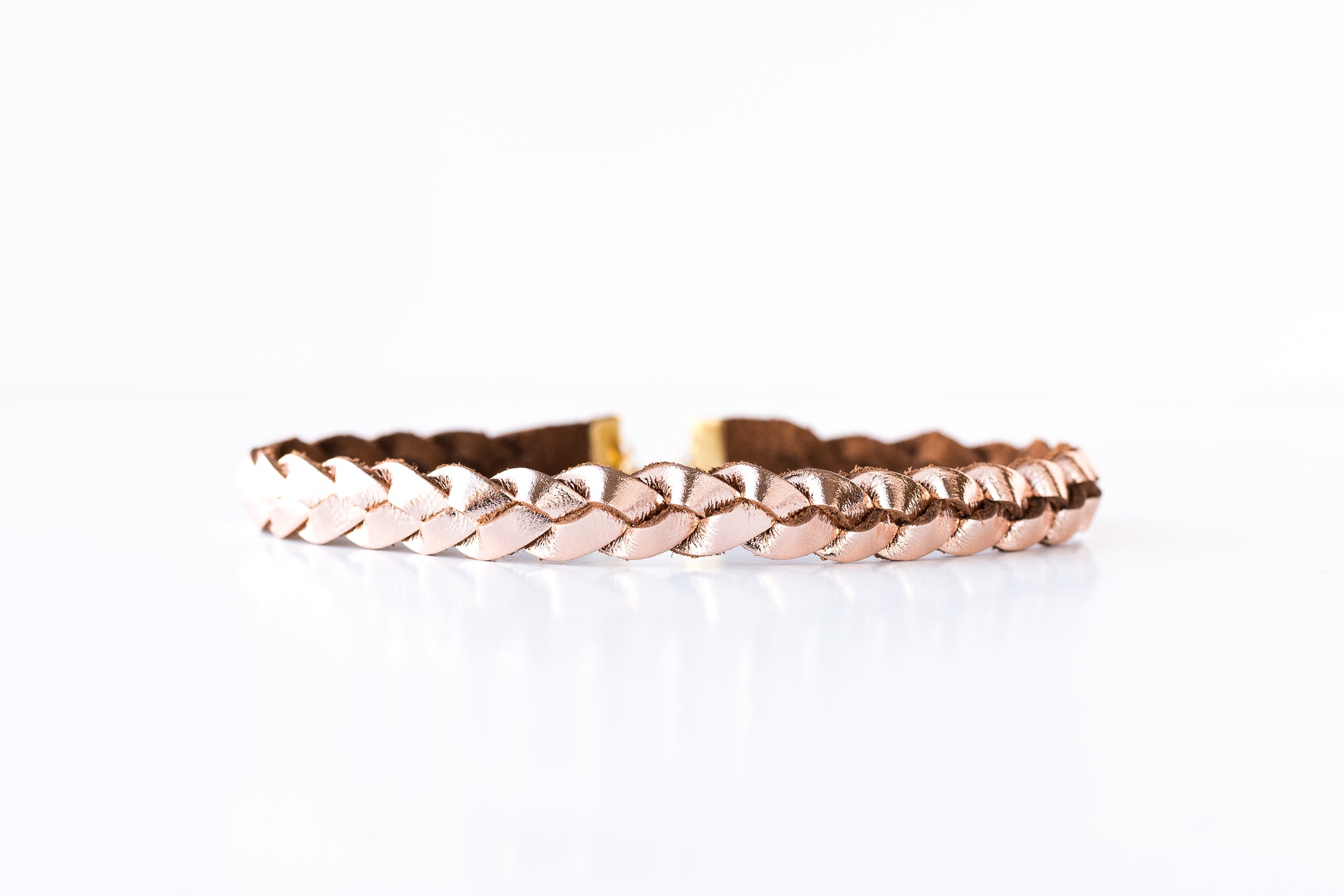Braided Leather Choker / Necklace / Metallic Rosegold
