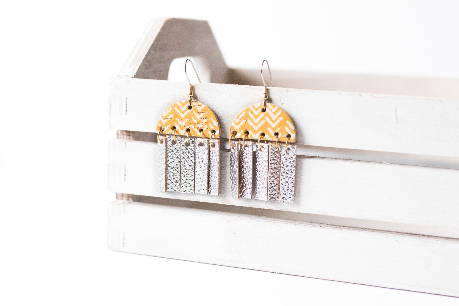 Cinque Luci, in Italian, means 5 lights! Just like a brilliant chandelier that catches your eye, these beautiful statement earrings are incredibly lightweight and pack a huge punch of leather style right on your ear!