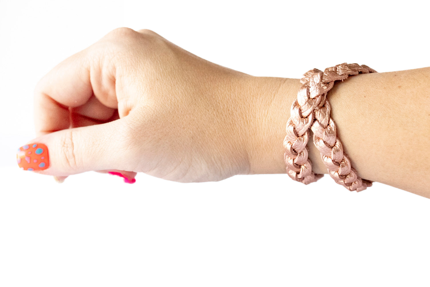 Double Wrap Braided Leather Bracelet / Soft Copper