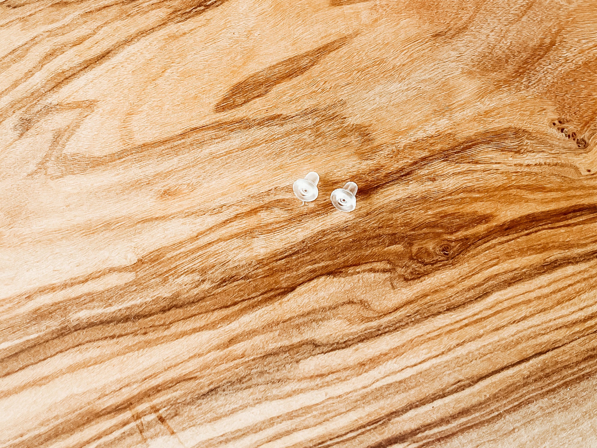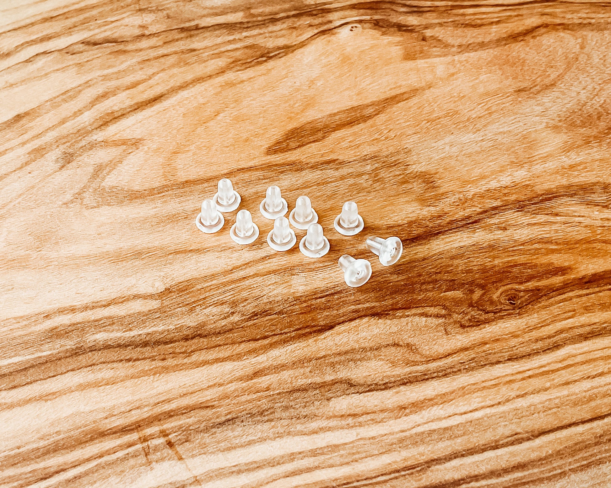 These are our classic clear rubber earring backs - they will come in Flourish Leather packaging!