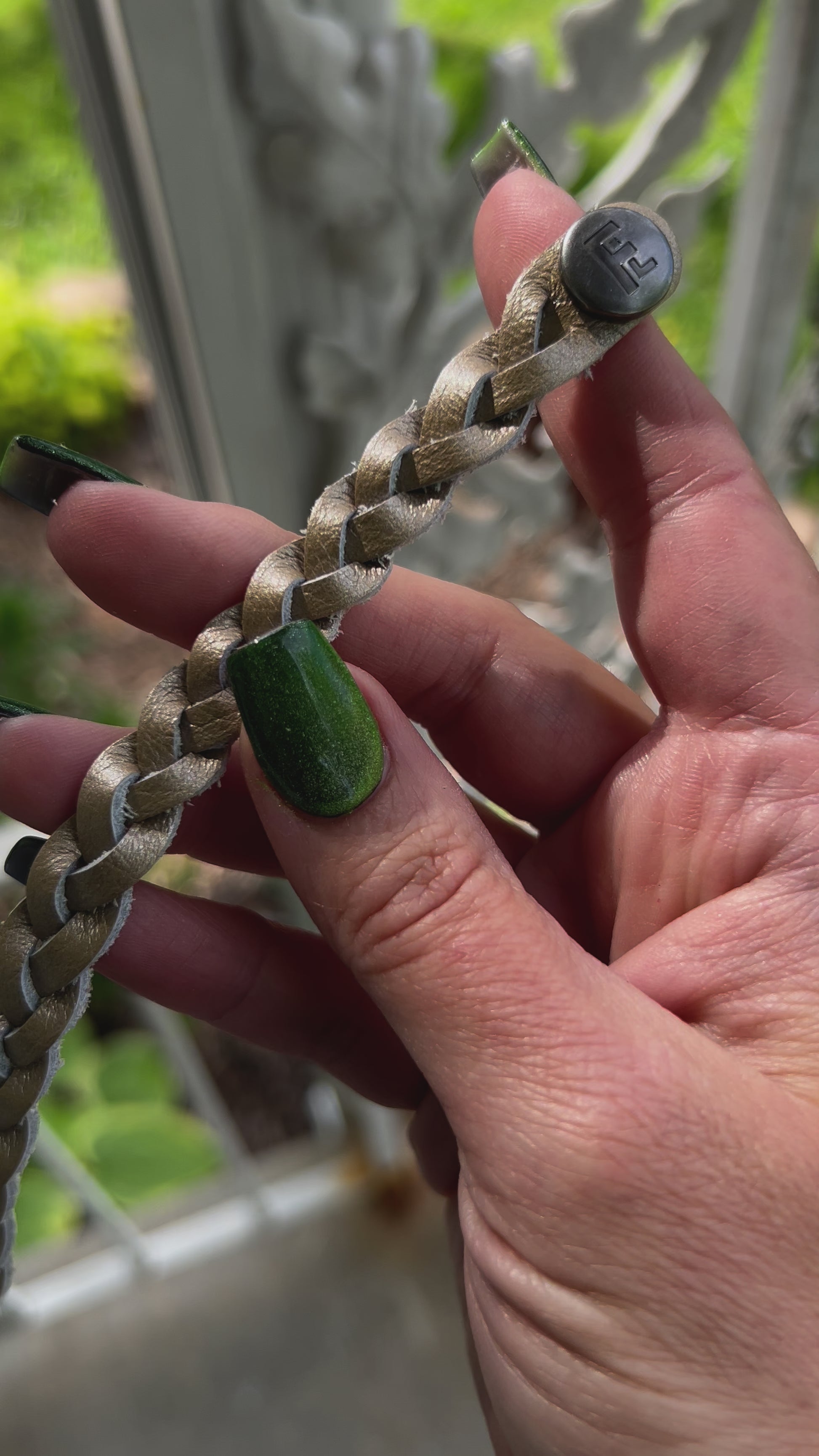 These bracelets will come with a brushed silver FL (Flourish Leather) logo snap.