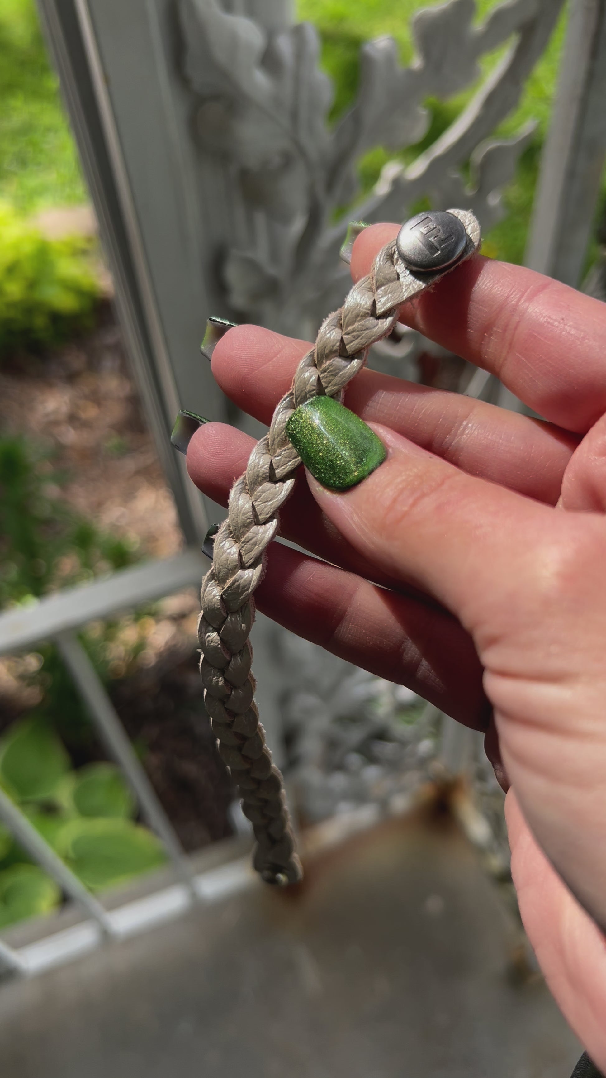 These bracelets will come with a brushed silver FL (Flourish Leather) logo snap.