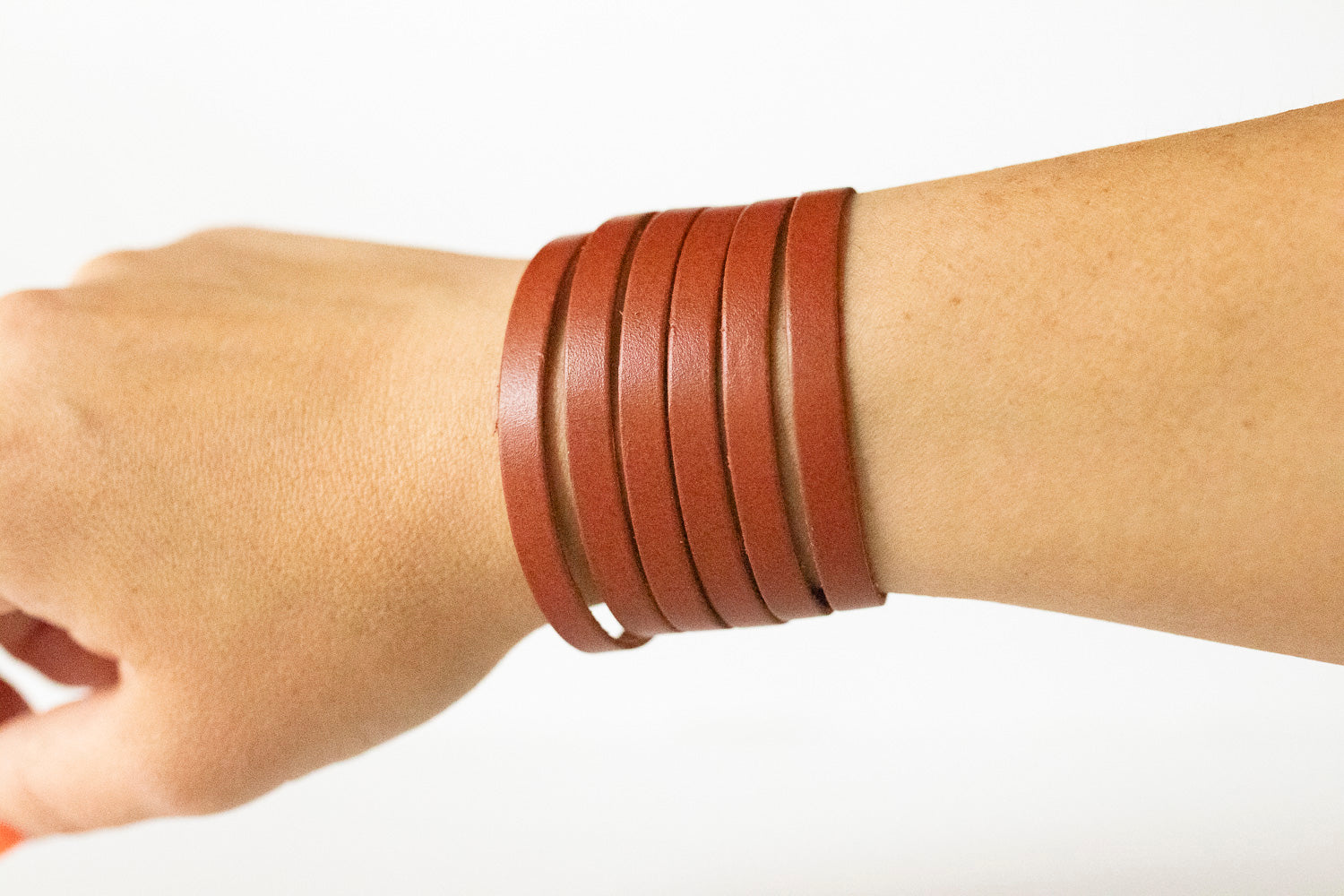 Leather Bracelet / Original Sliced Cuff / Autumn Fire