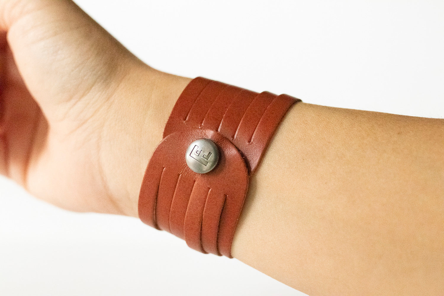 These bracelets will come with a brushed silver FL (Flourish Leather) logo snap.