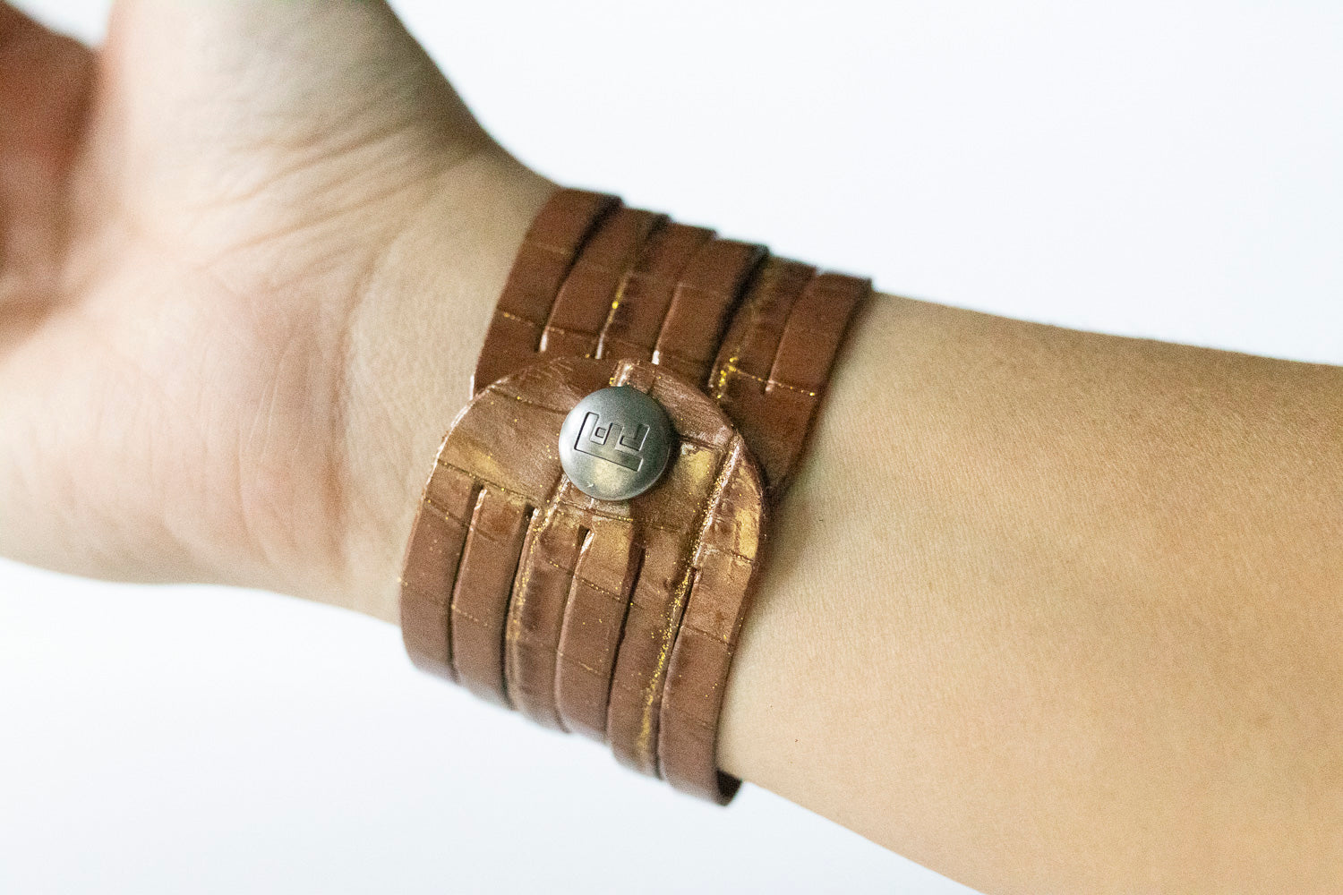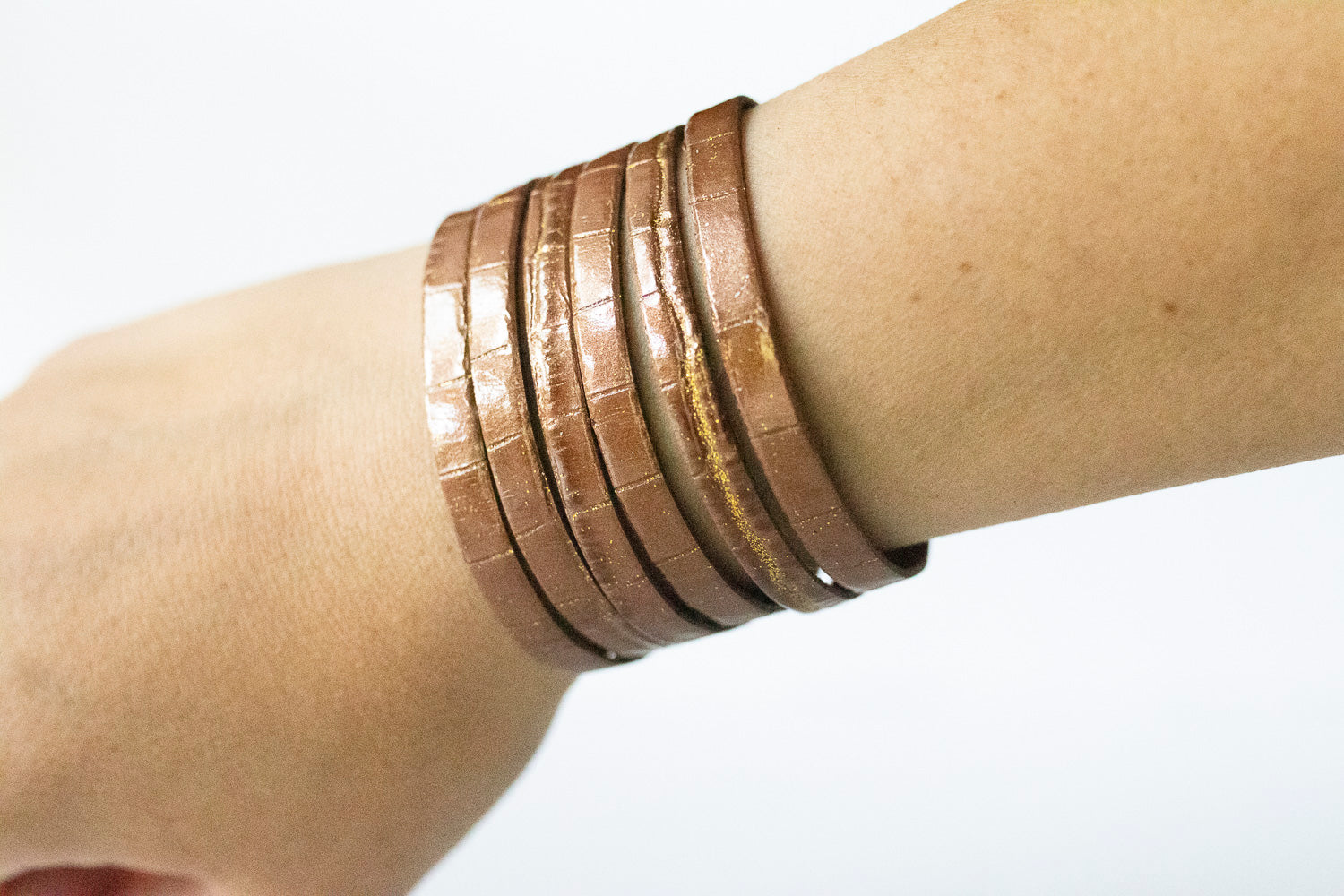 Leather Bracelet / Original Sliced Cuff / Chocolate Croc