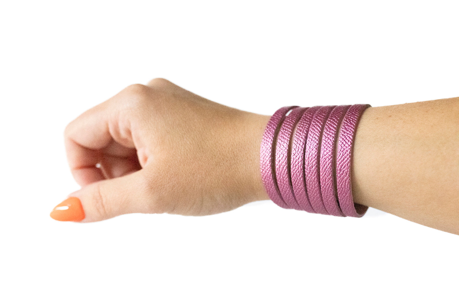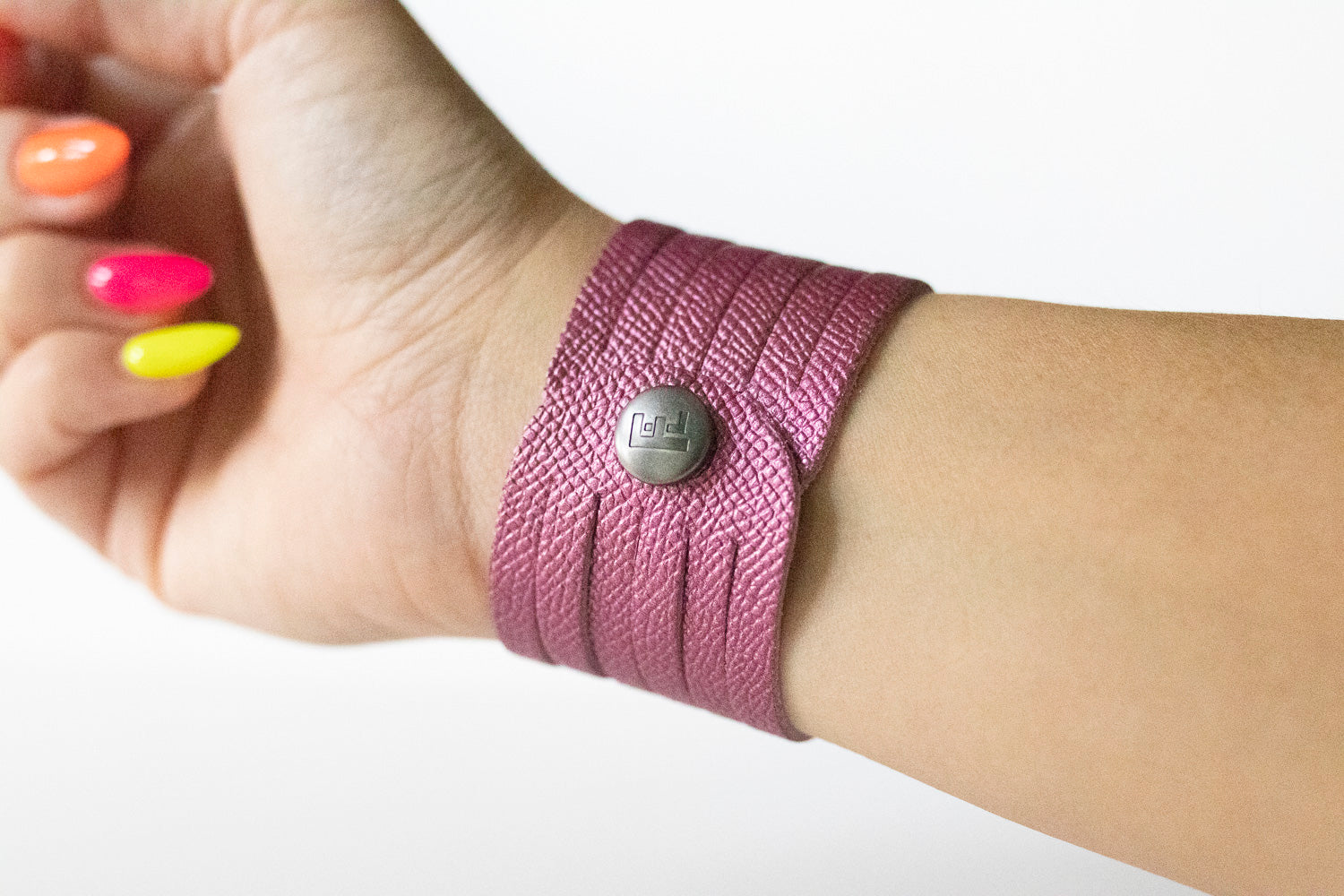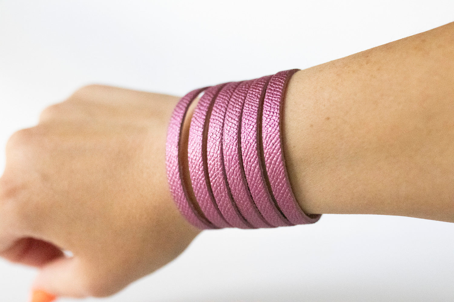 Leather Bracelet / Original Sliced Cuff / French Rose Shimmer