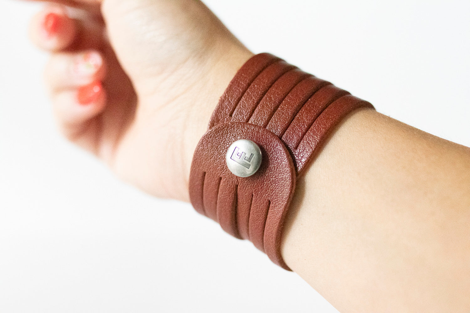 These bracelets will come with a brushed silver FL (Flourish Leather) logo snap.