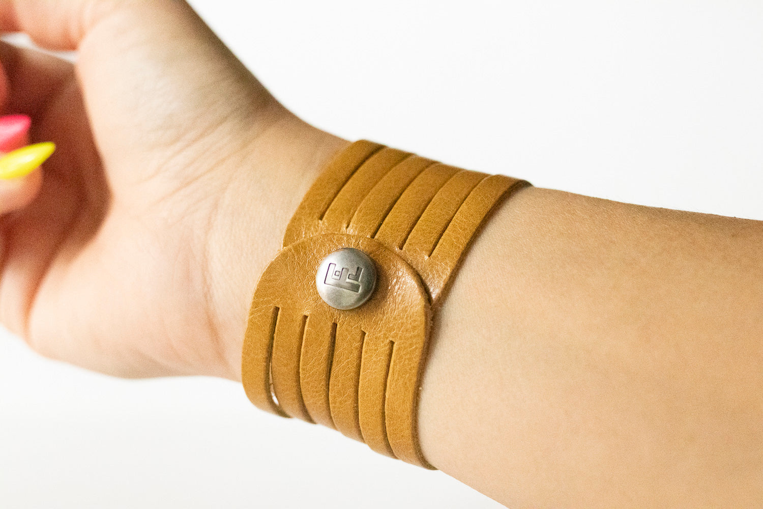 These bracelets will come with a brushed silver FL (Flourish Leather) logo snap.