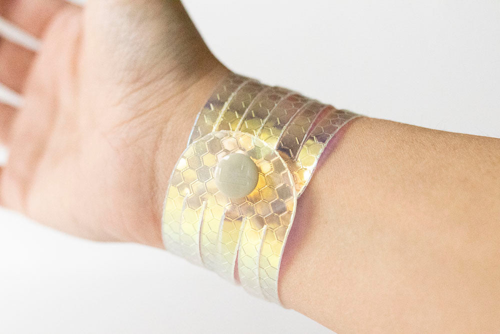 Leather Bracelet / Original Sliced Cuff / Honeycomb Prism Jelly