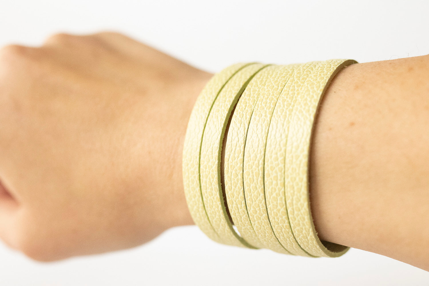 Leather Bracelet / Original Sliced Cuff / Lemon Seltzer