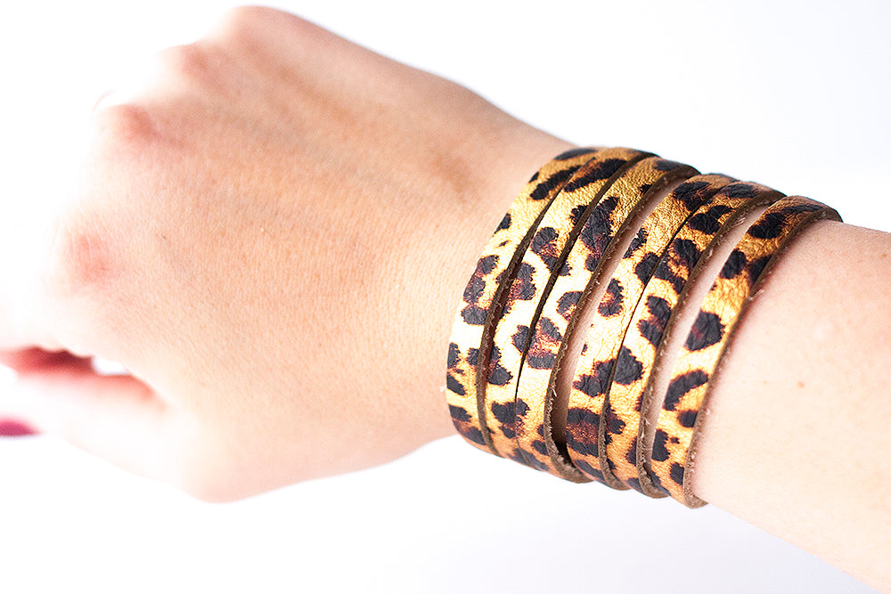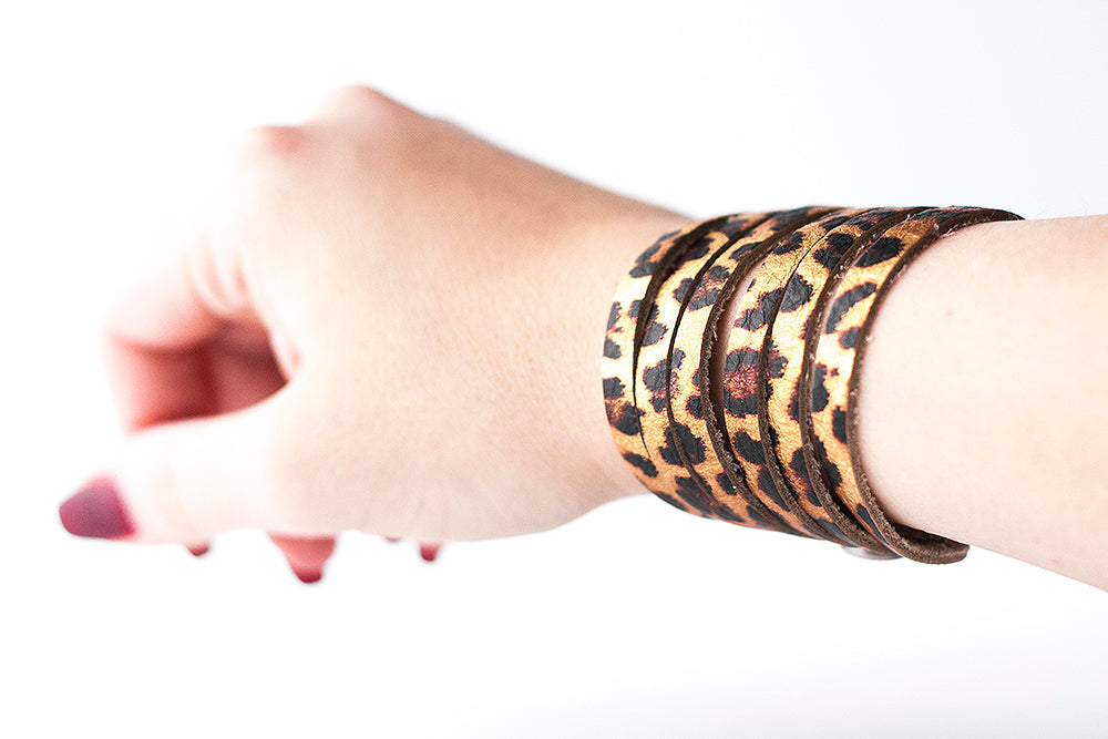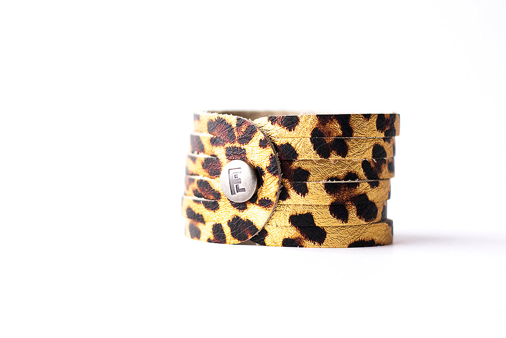 Leather Bracelet / Original Sliced Cuff / Leopard Shimmer