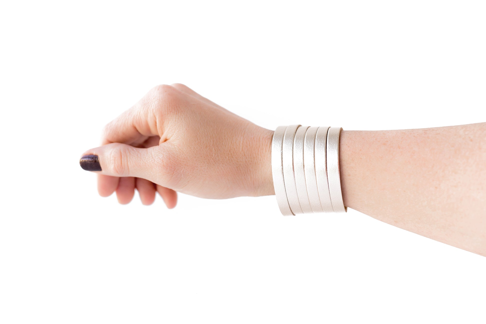 Leather Bracelet / Original Sliced Cuff / Metallic Platinum