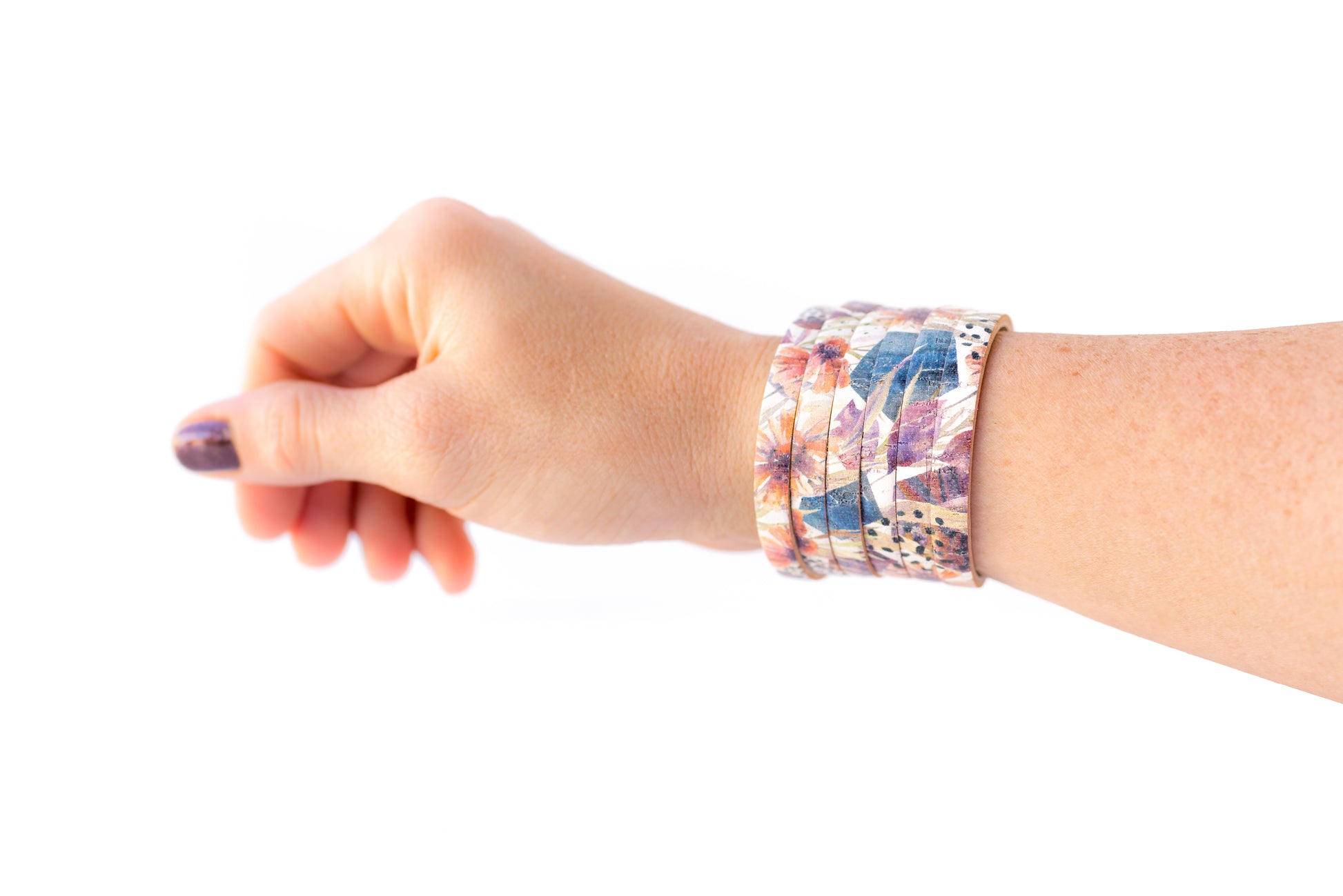 Leather Bracelet / Original Sliced Cuff / Pressed Flowers Cork