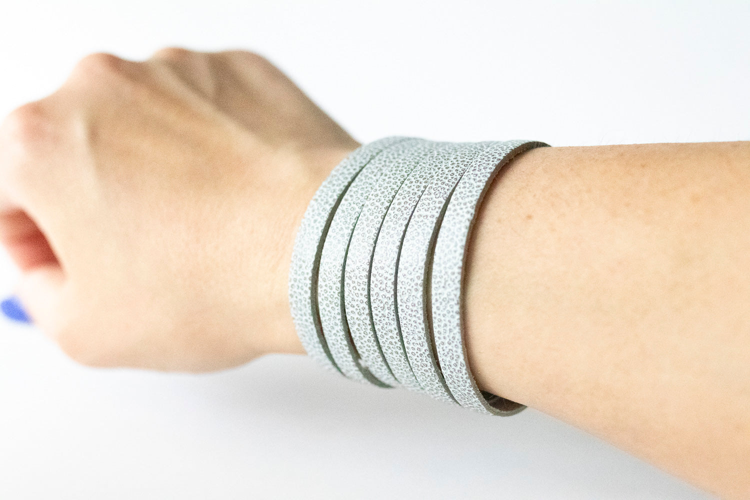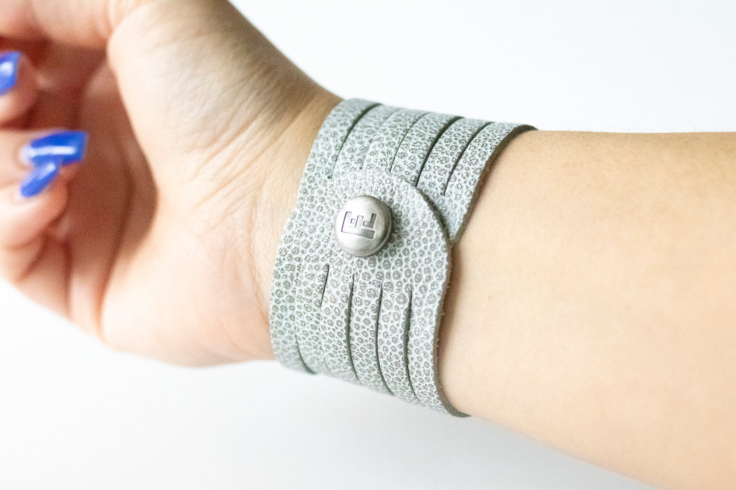 Leather Bracelet / Original Sliced Cuff / Silver Fox