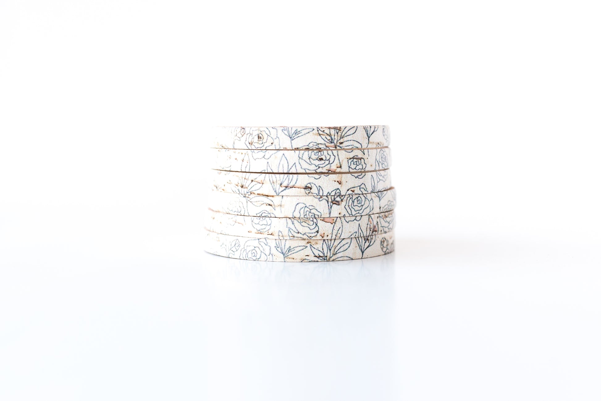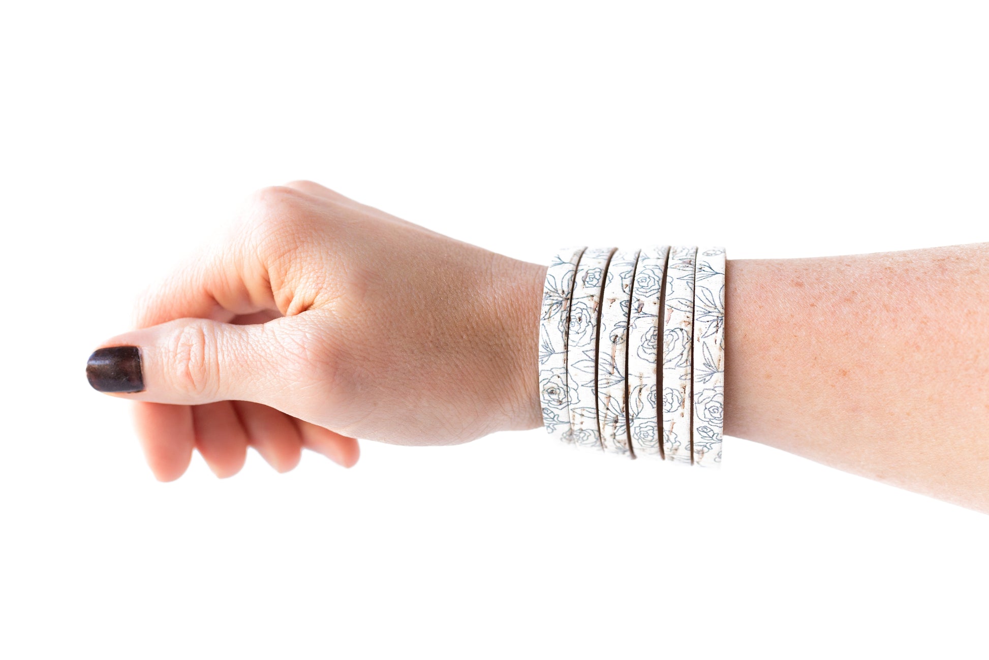 Leather Bracelet / Original Sliced Cuff / Simple Roses Cork