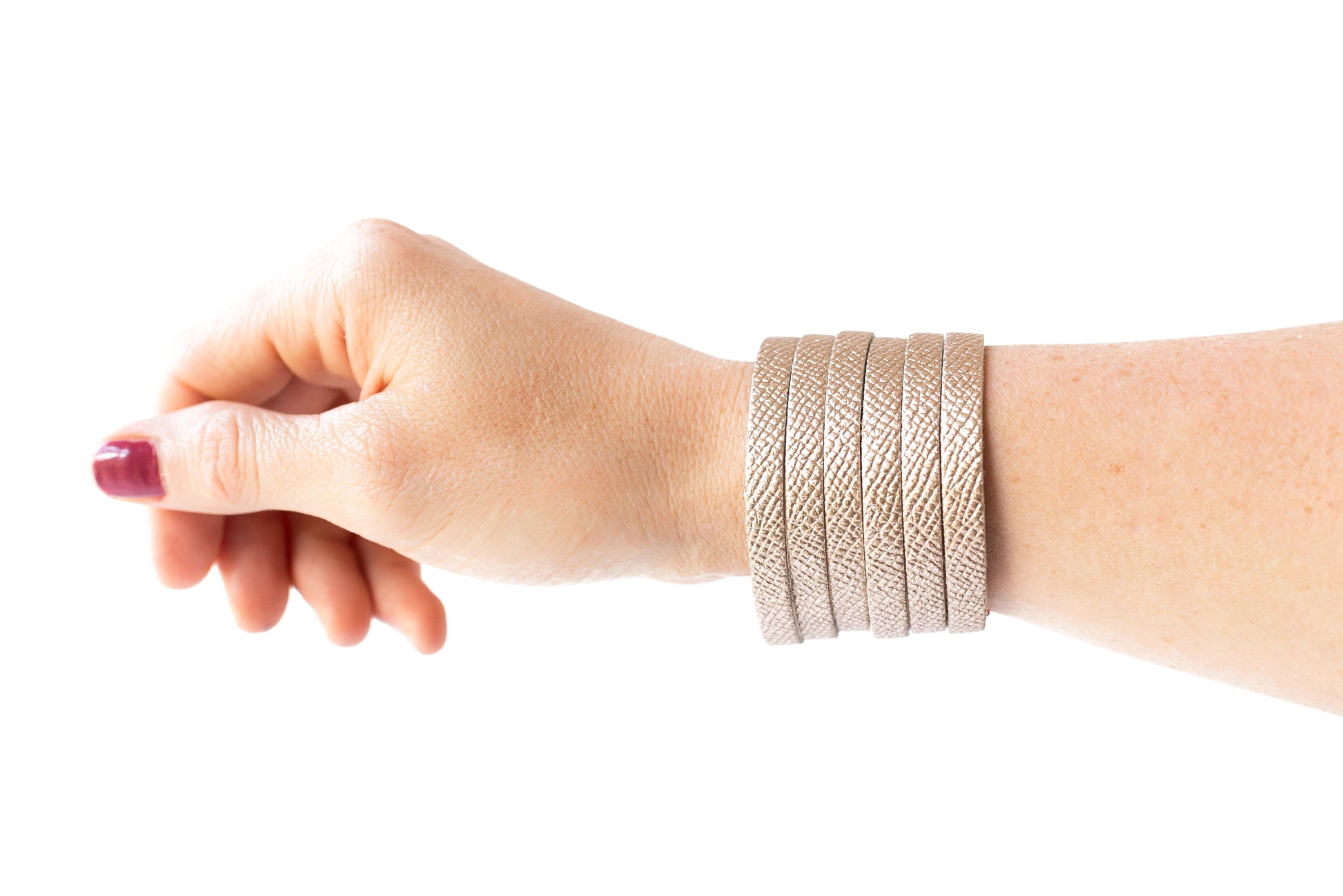 Leather Bracelet / Original Sliced Cuff / White Gold