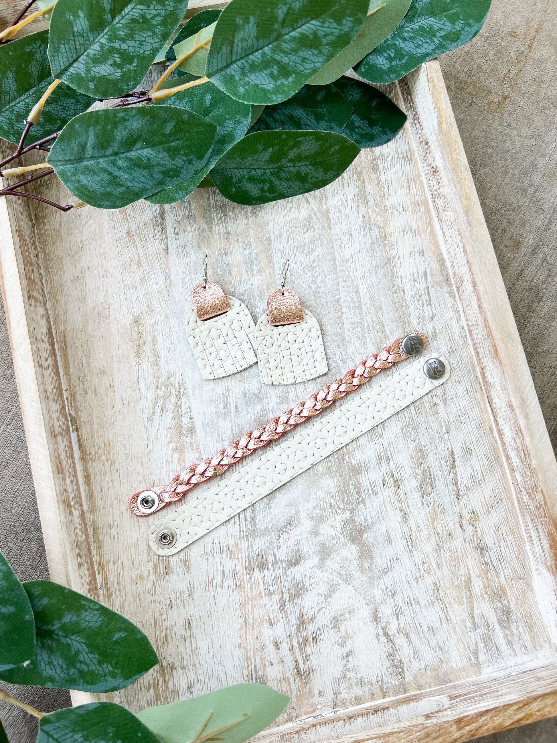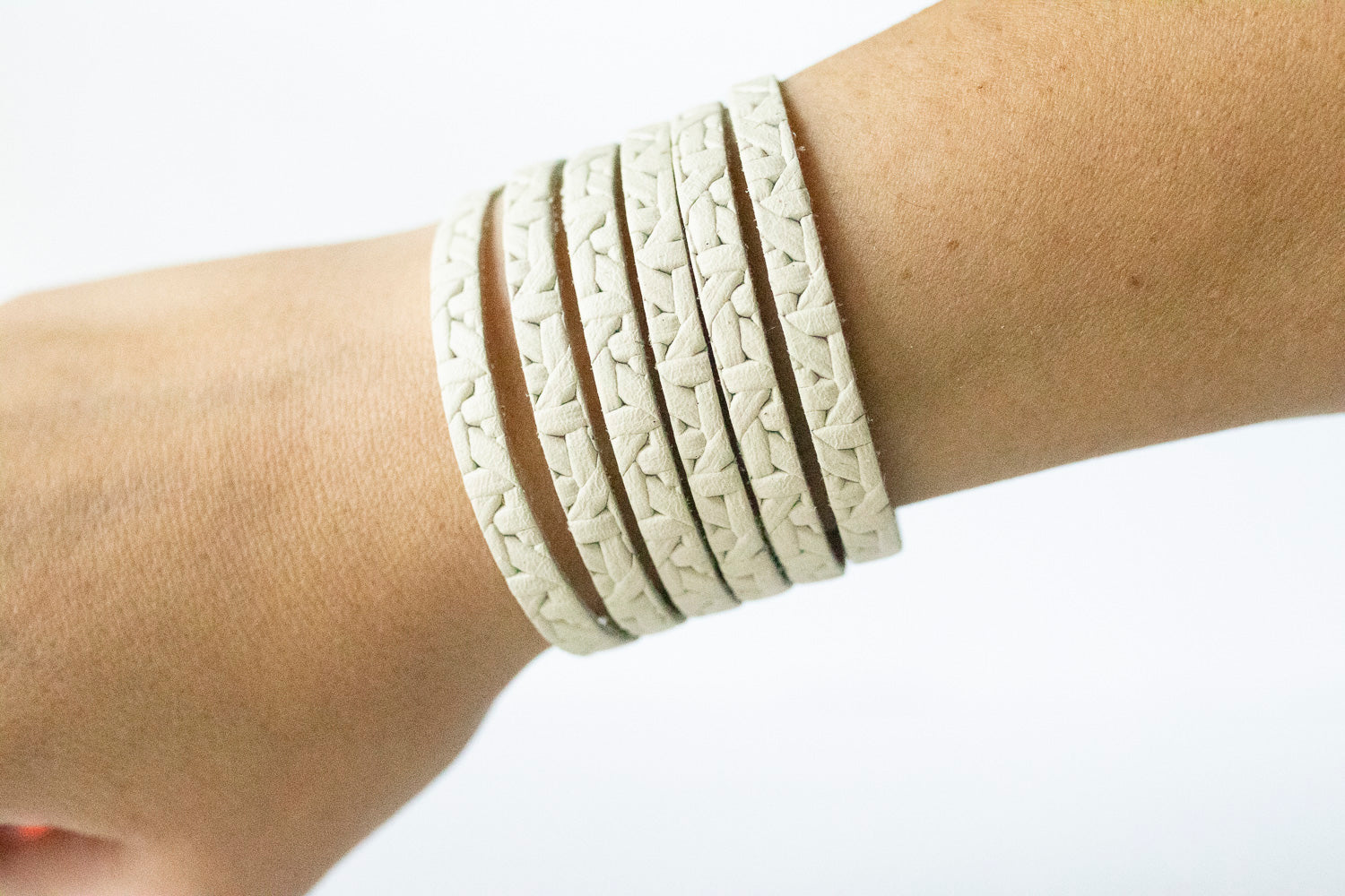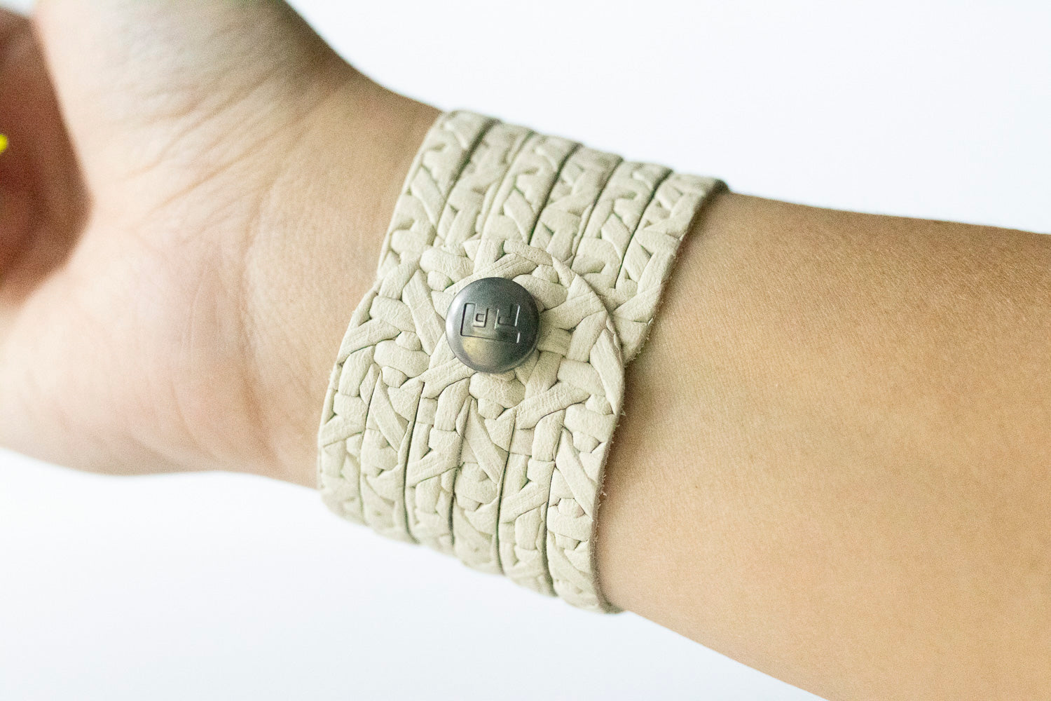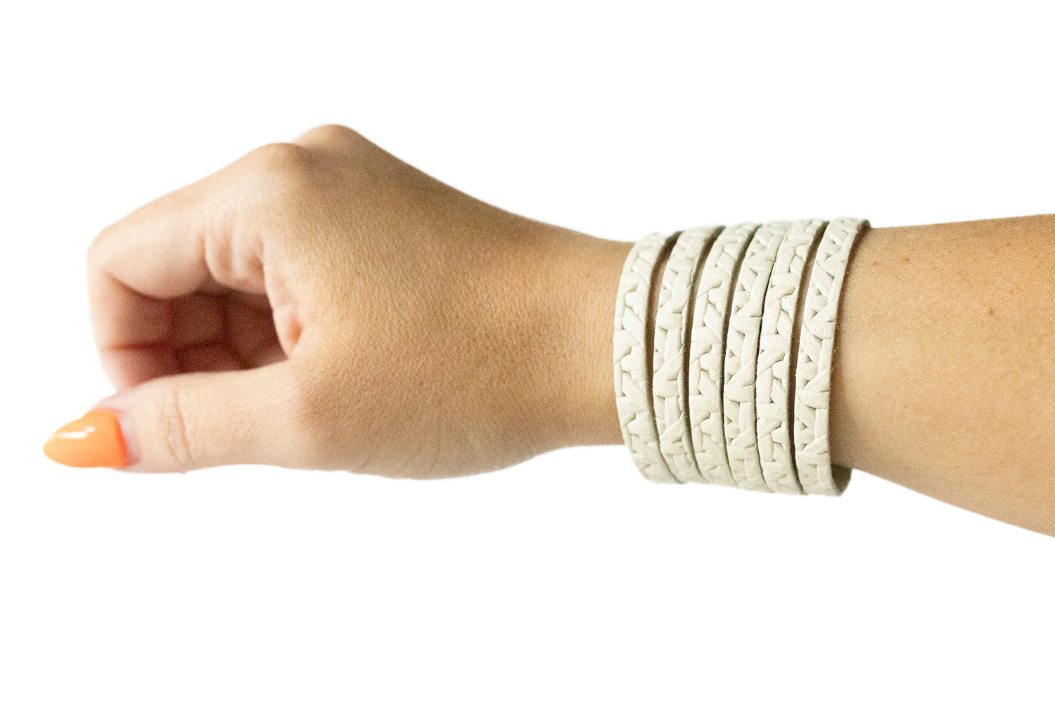 Leather Bracelet / Original Sliced Cuff / Woven Chalk White