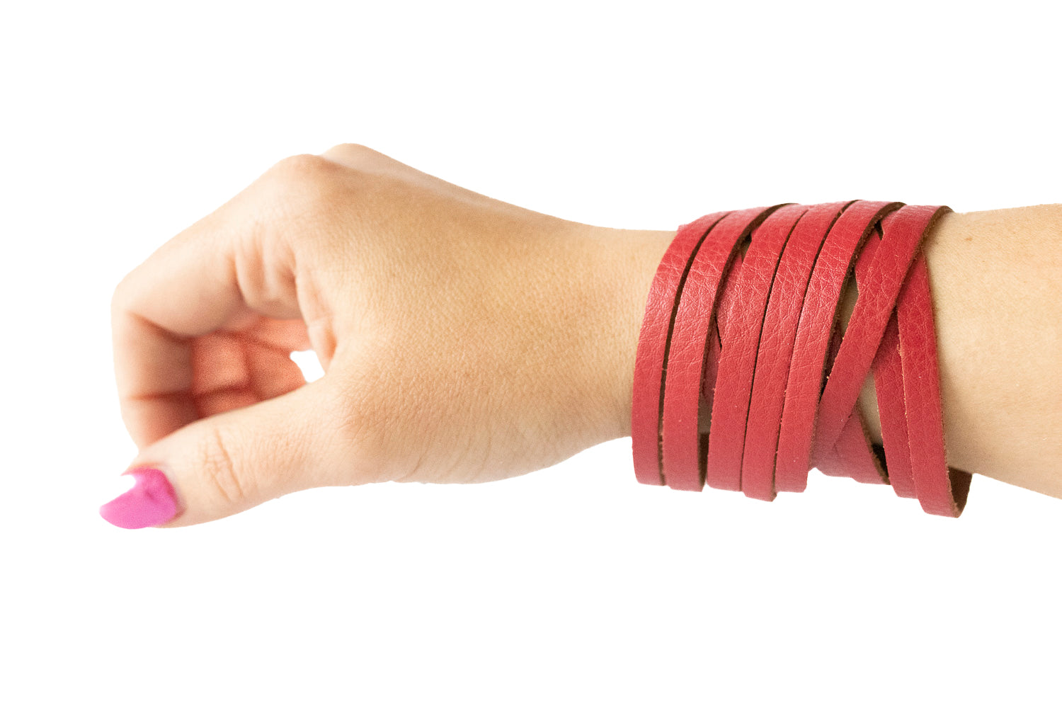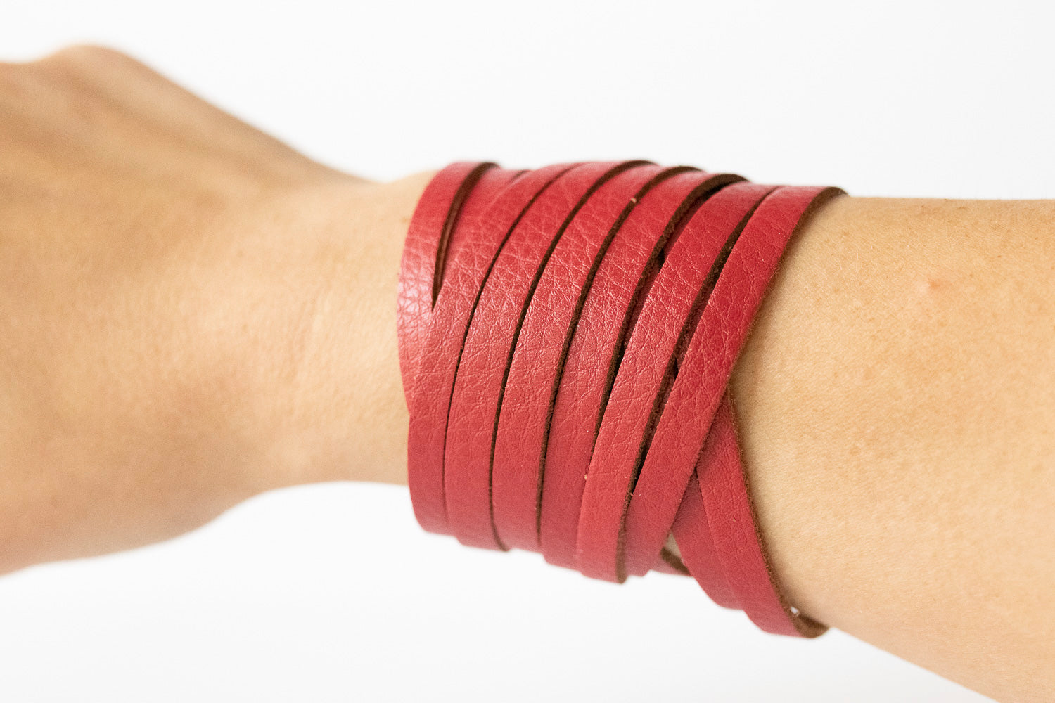 Leather Bracelet / Original Sliced Wrap Cuff / Apple Red