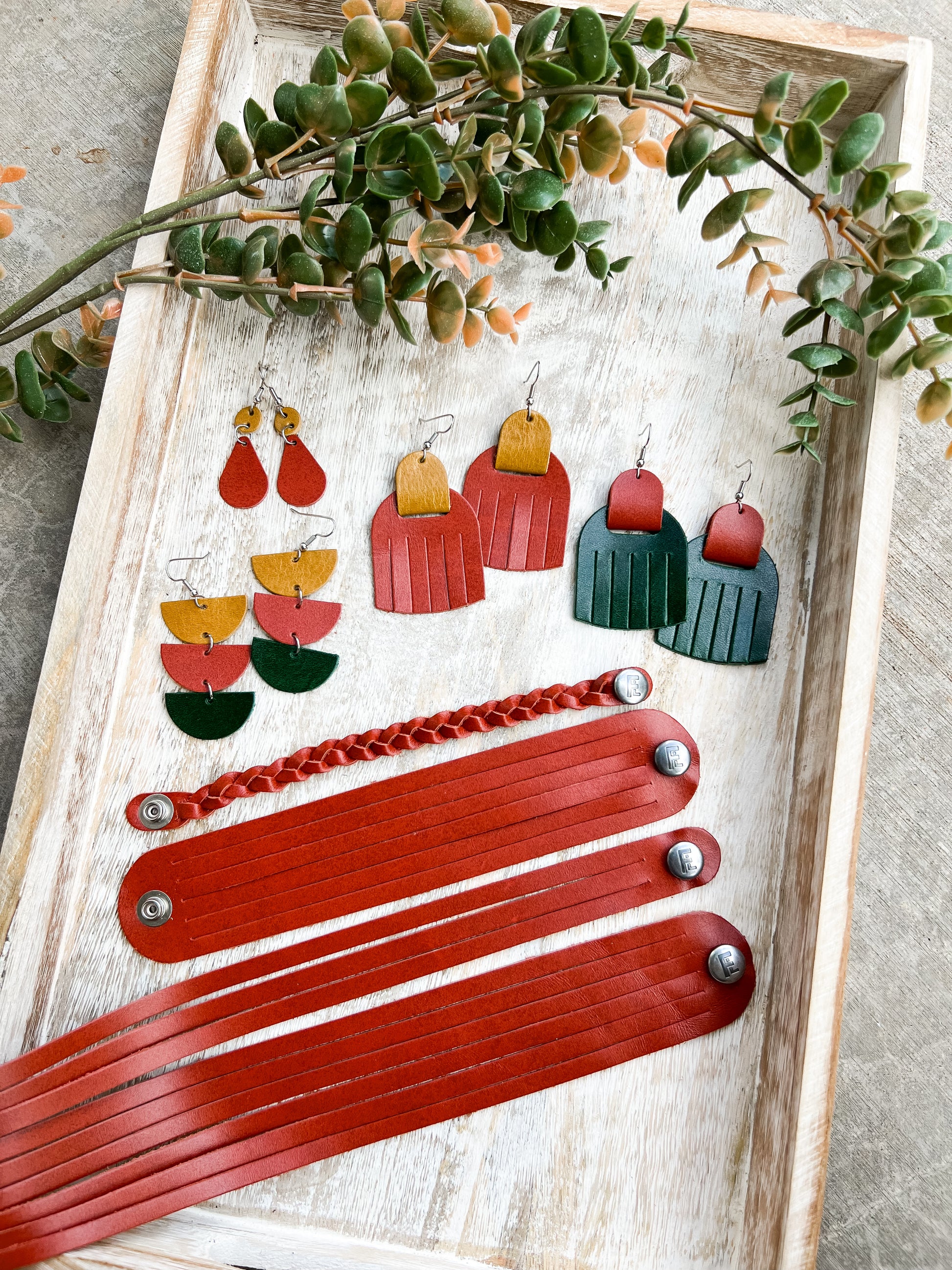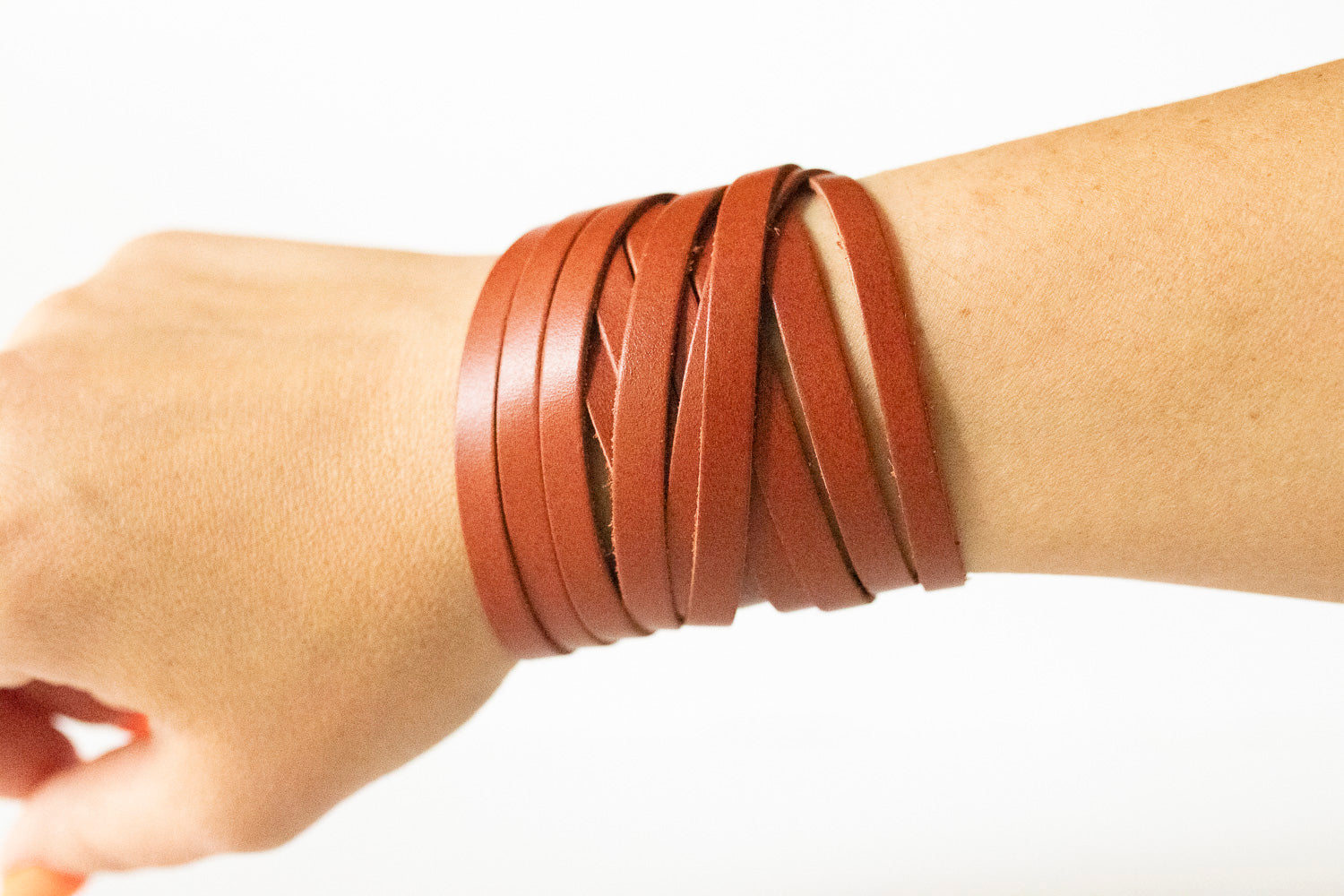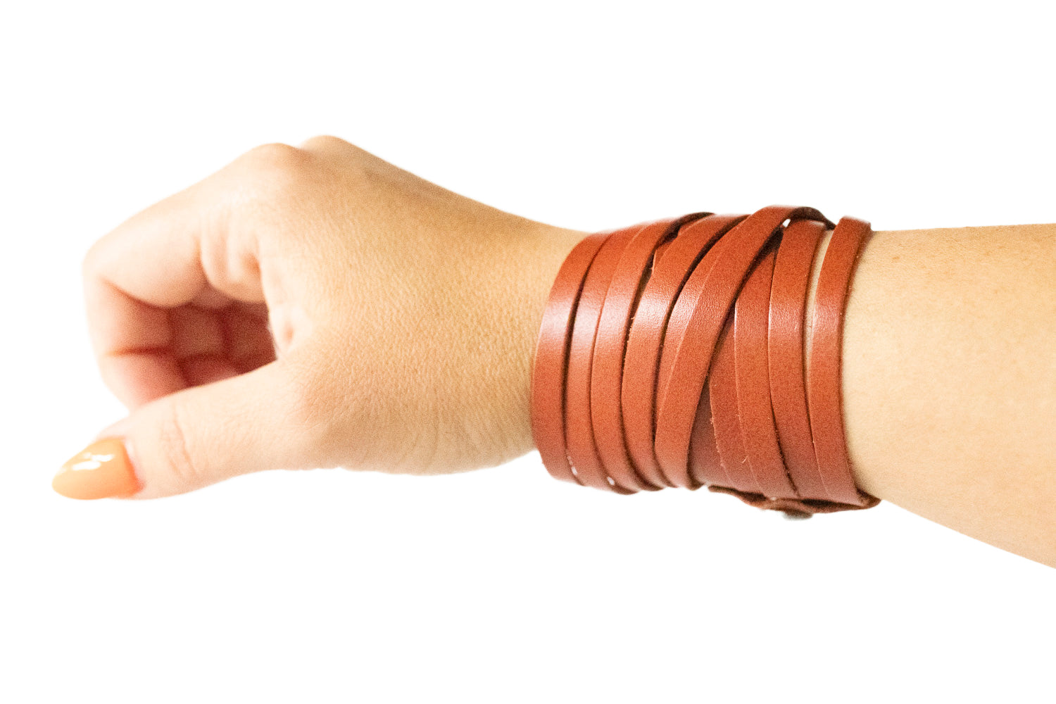 Leather Bracelet / Original Sliced Wrap Cuff / Autumn Fire