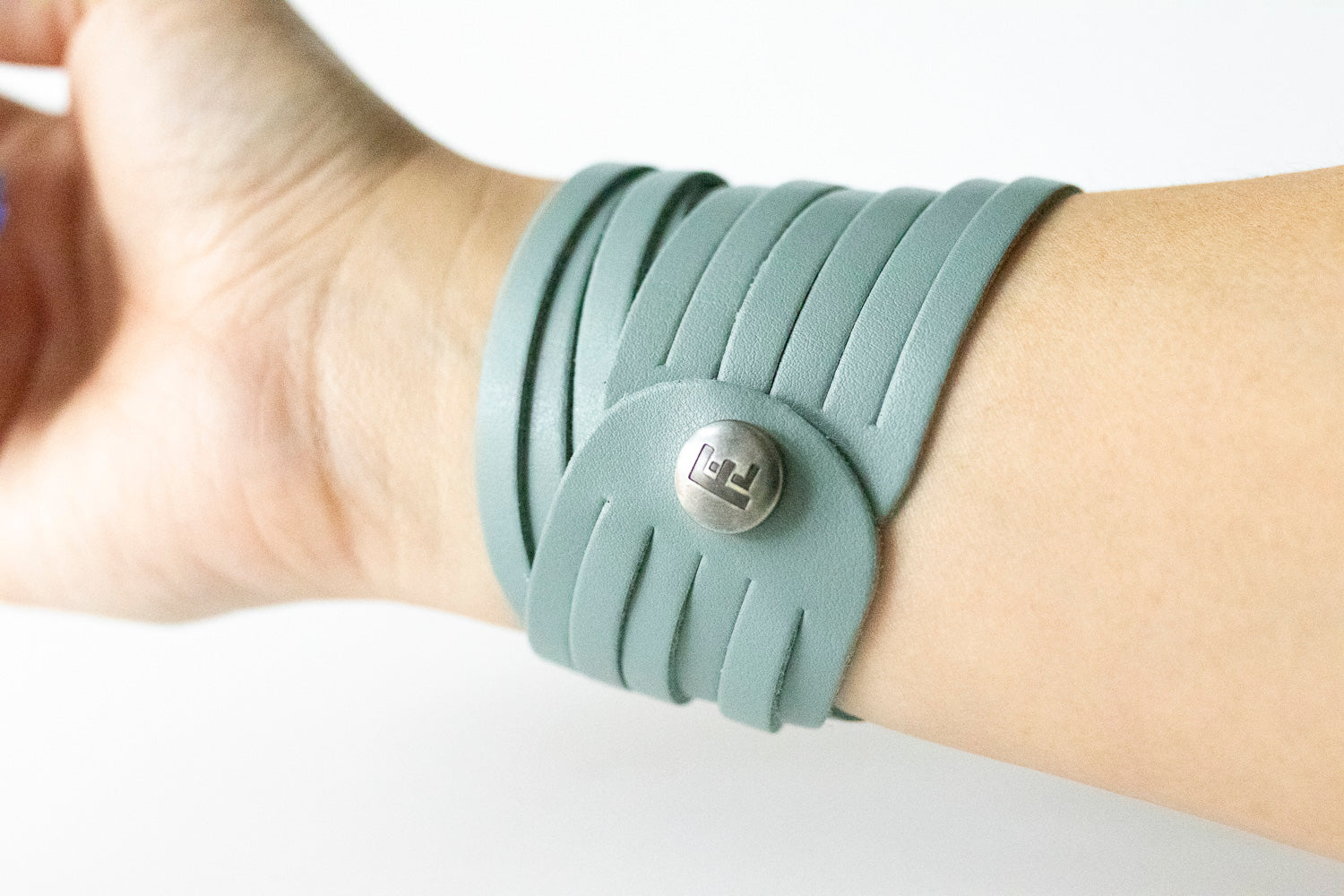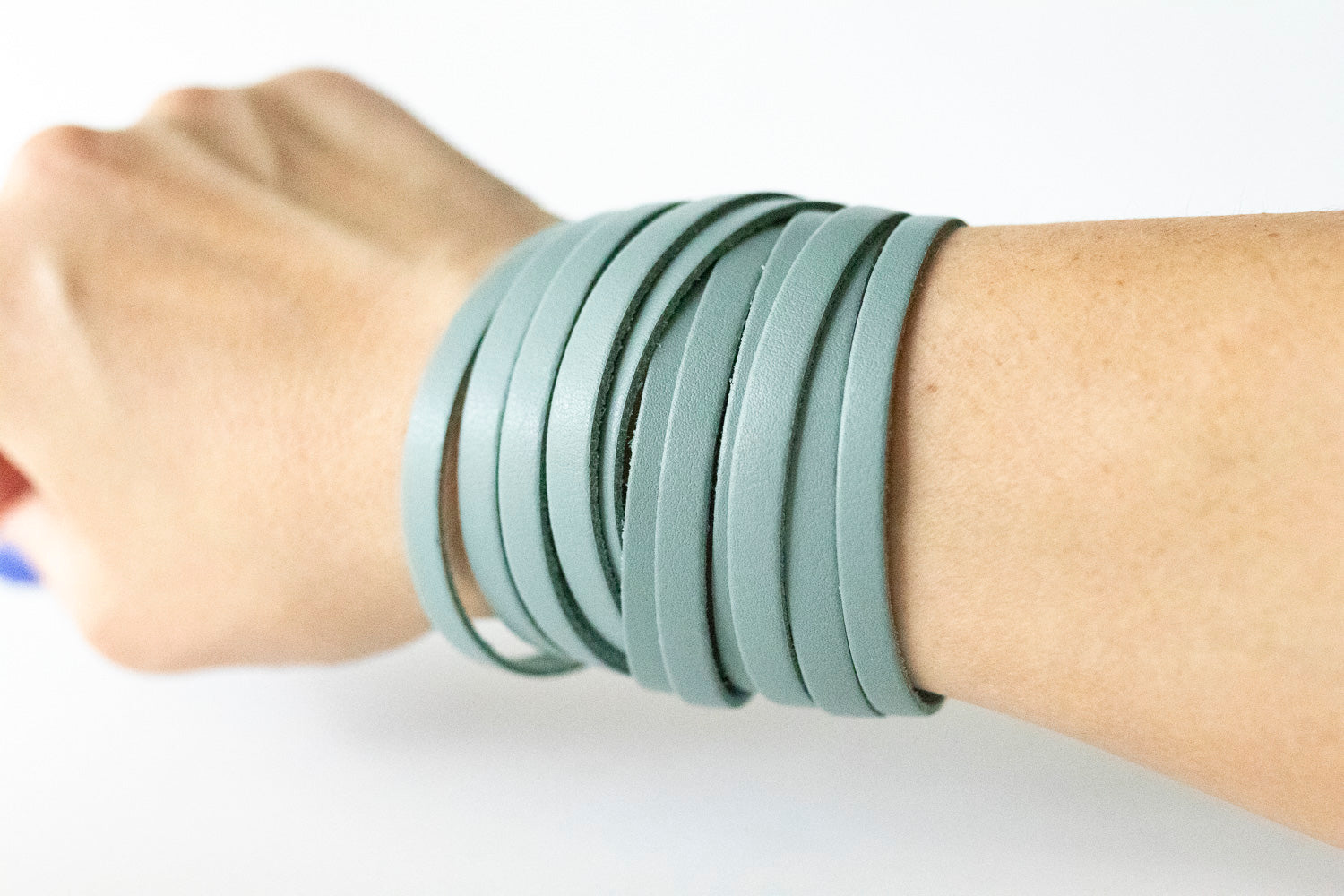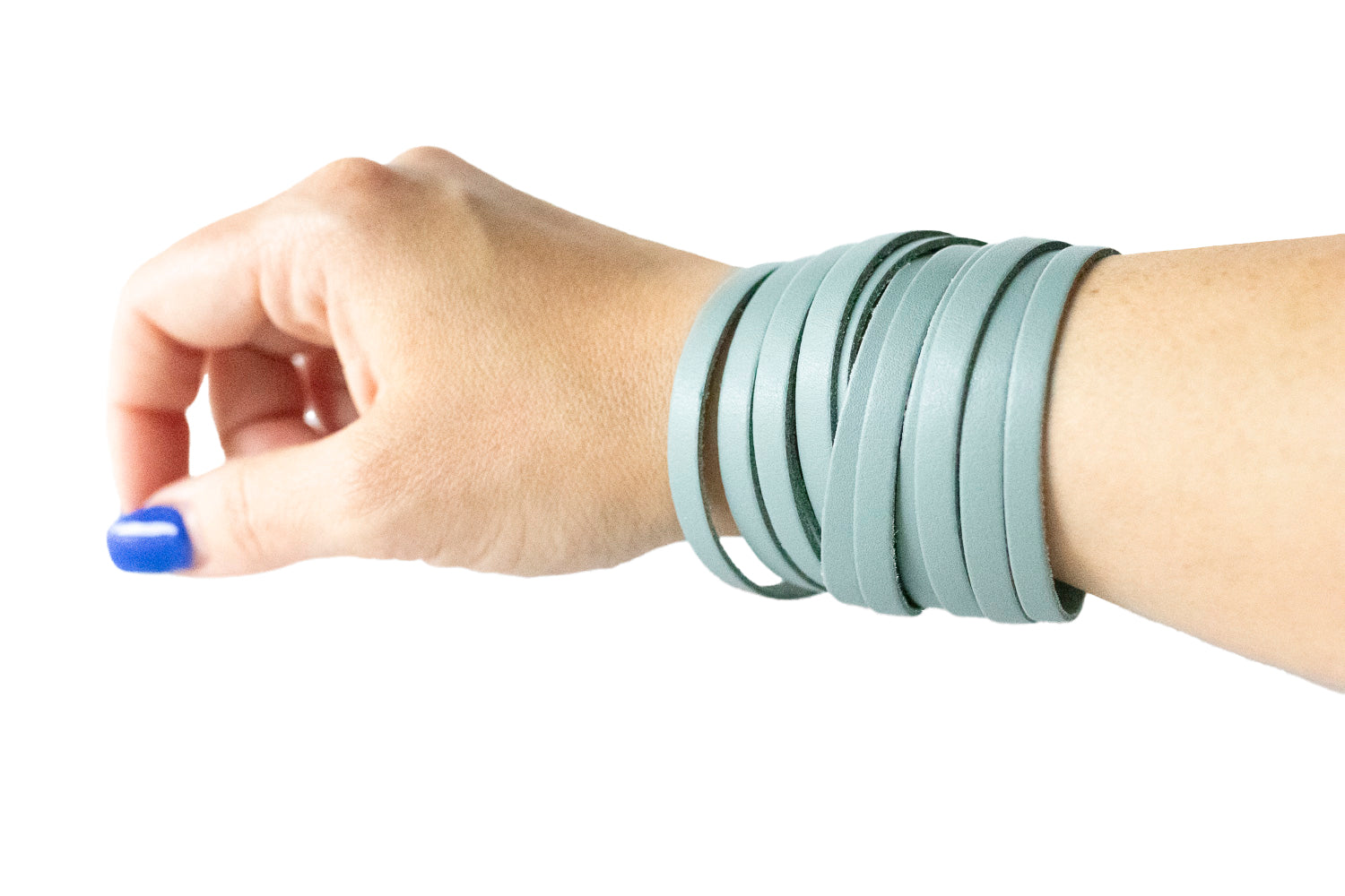 Leather Bracelet / Original Sliced Wrap Cuff / Big Sky Blue