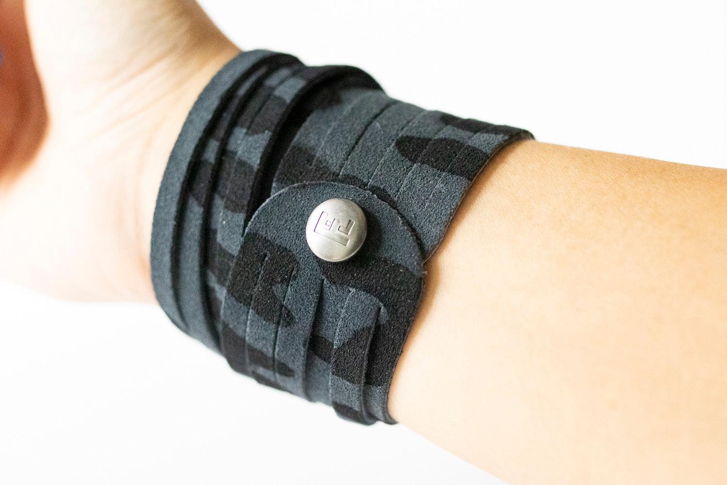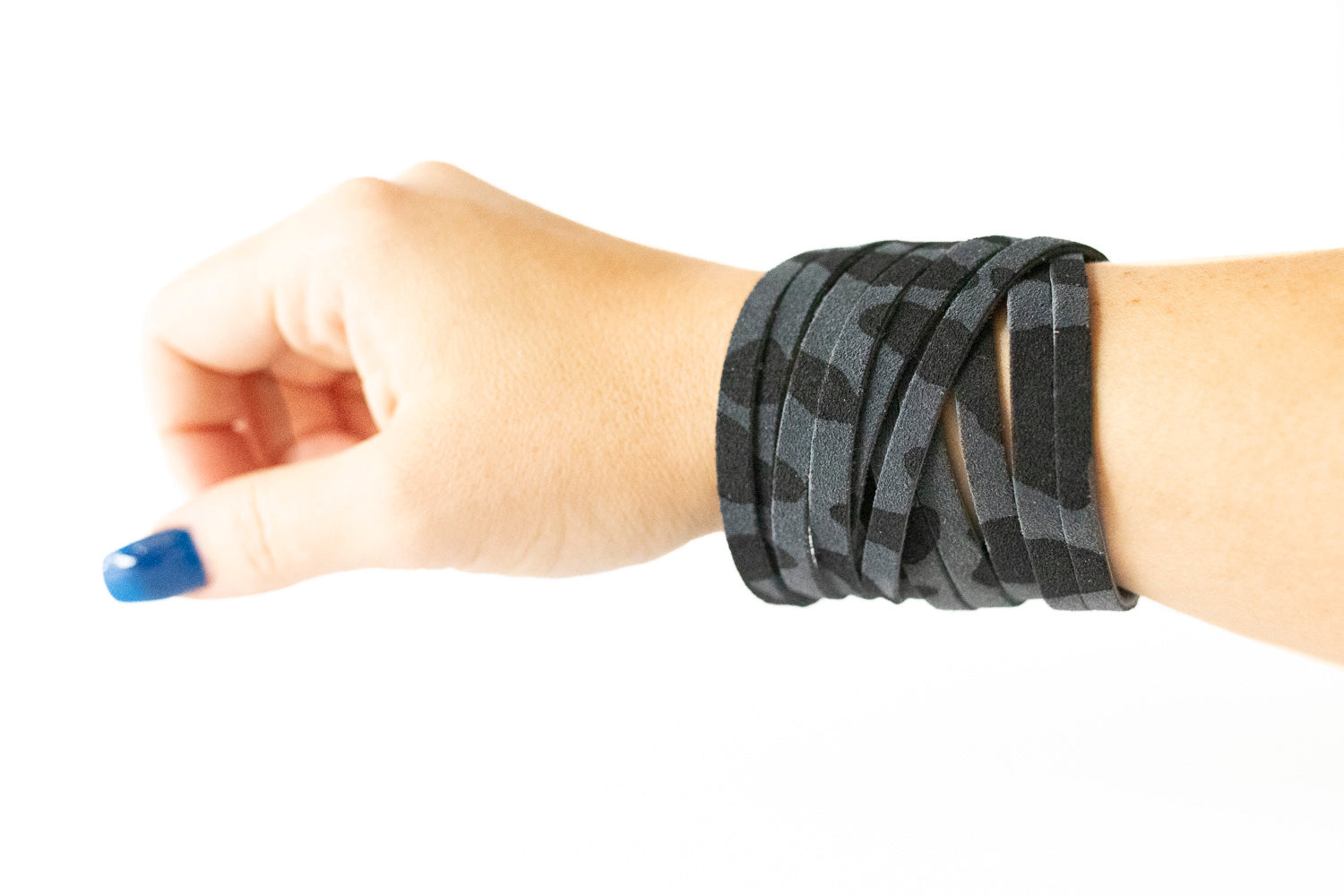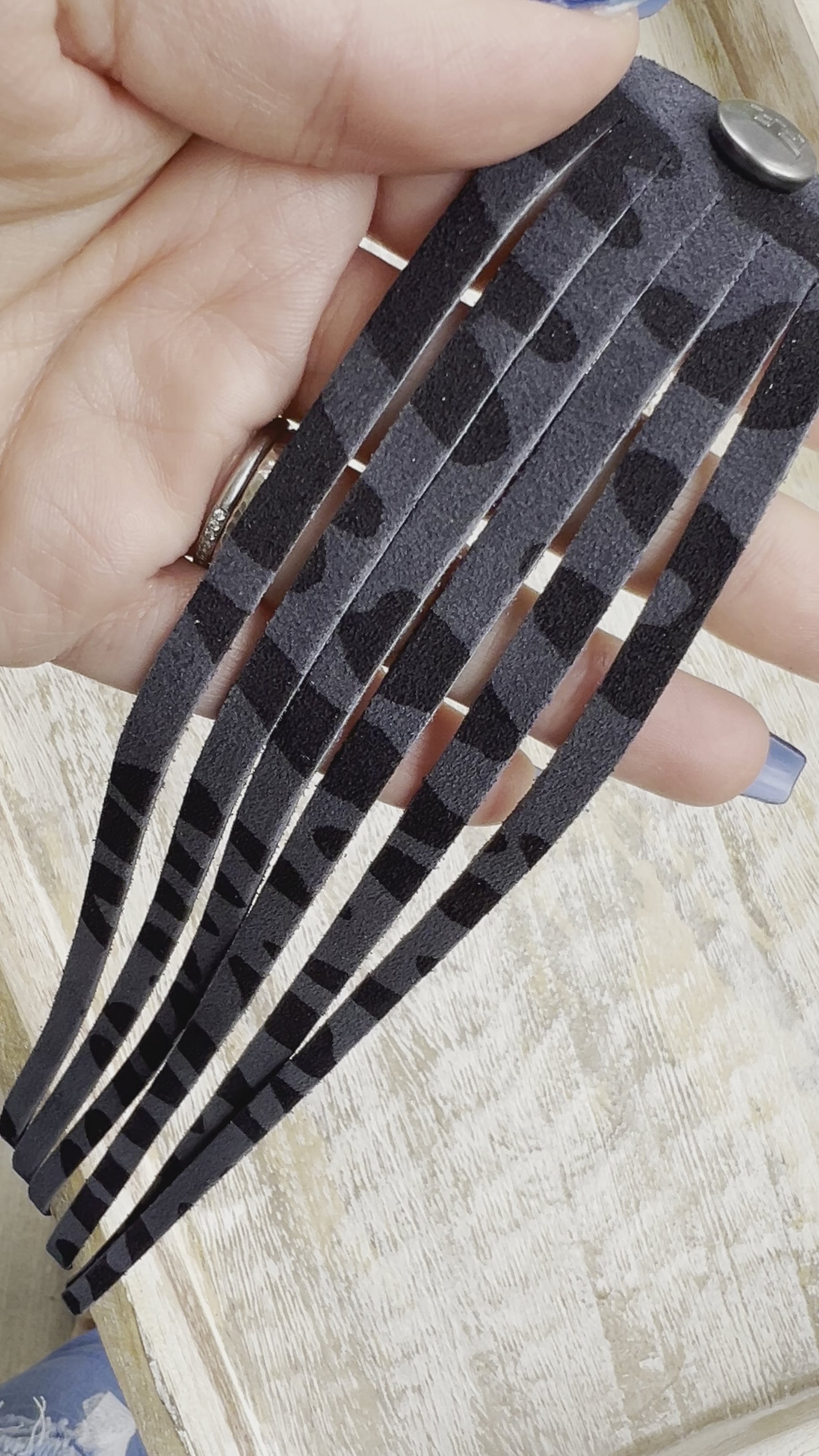 Leather Bracelet / Original Sliced Wrap Cuff / Black Leopard Suede