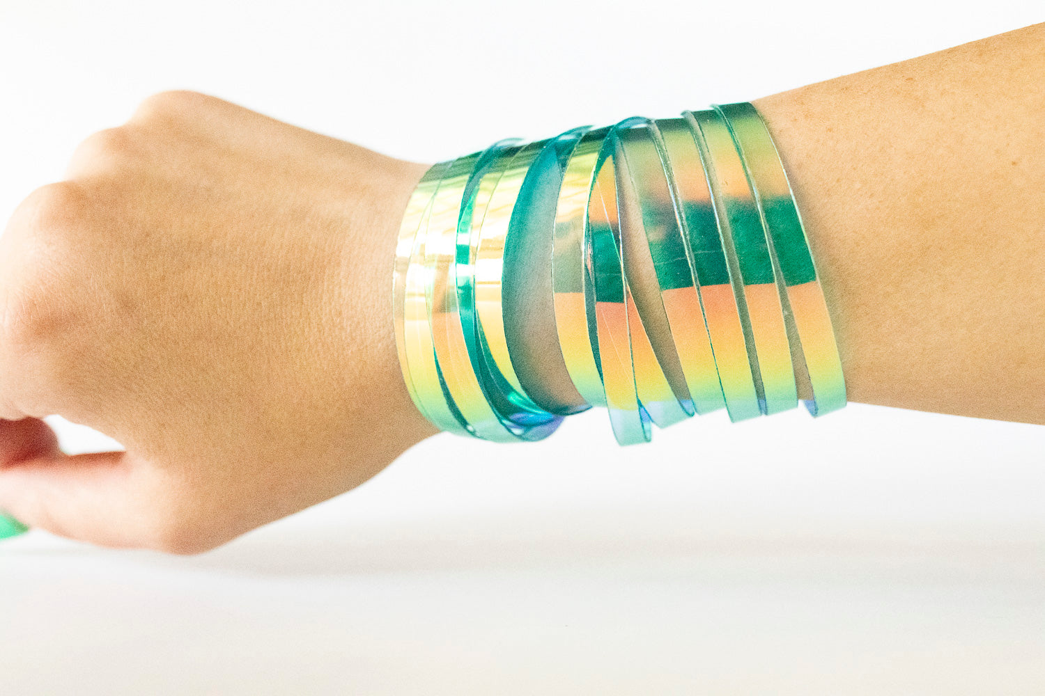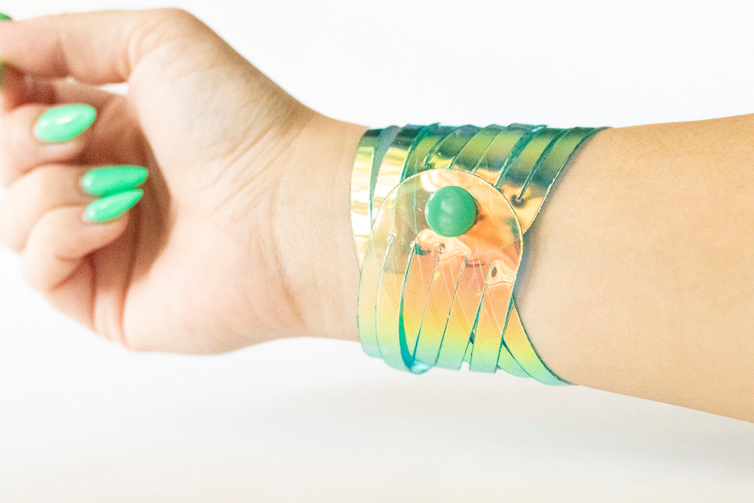 This bracelet is 100% genuine jelly vinyl. Handmade and hand-cut.