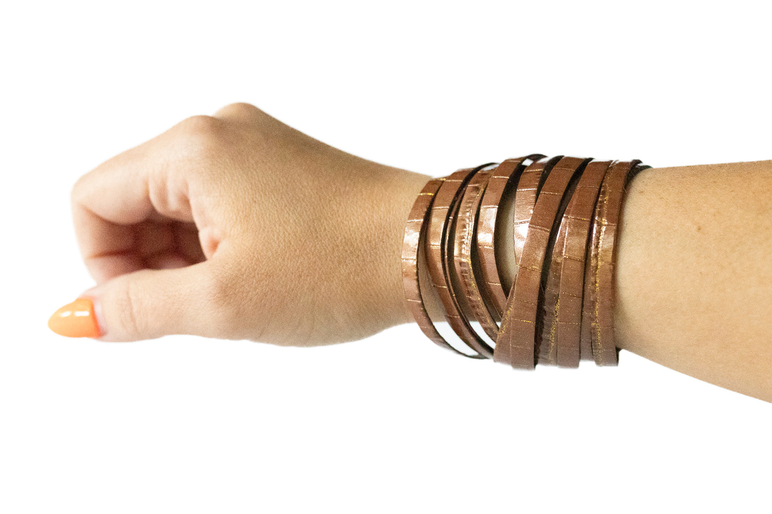 Leather Bracelet / Original Sliced Wrap Cuff / Chocolate Croc