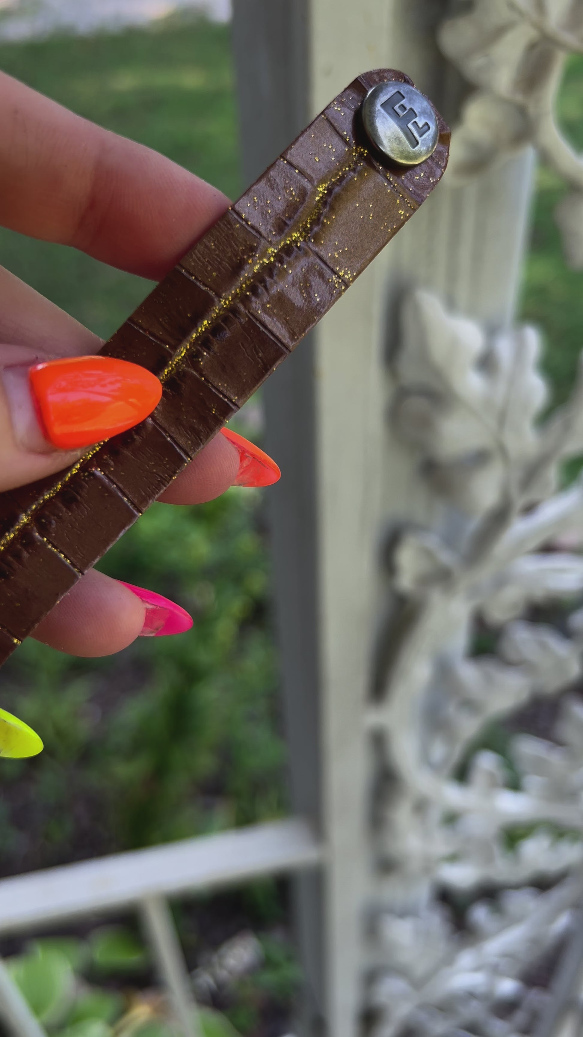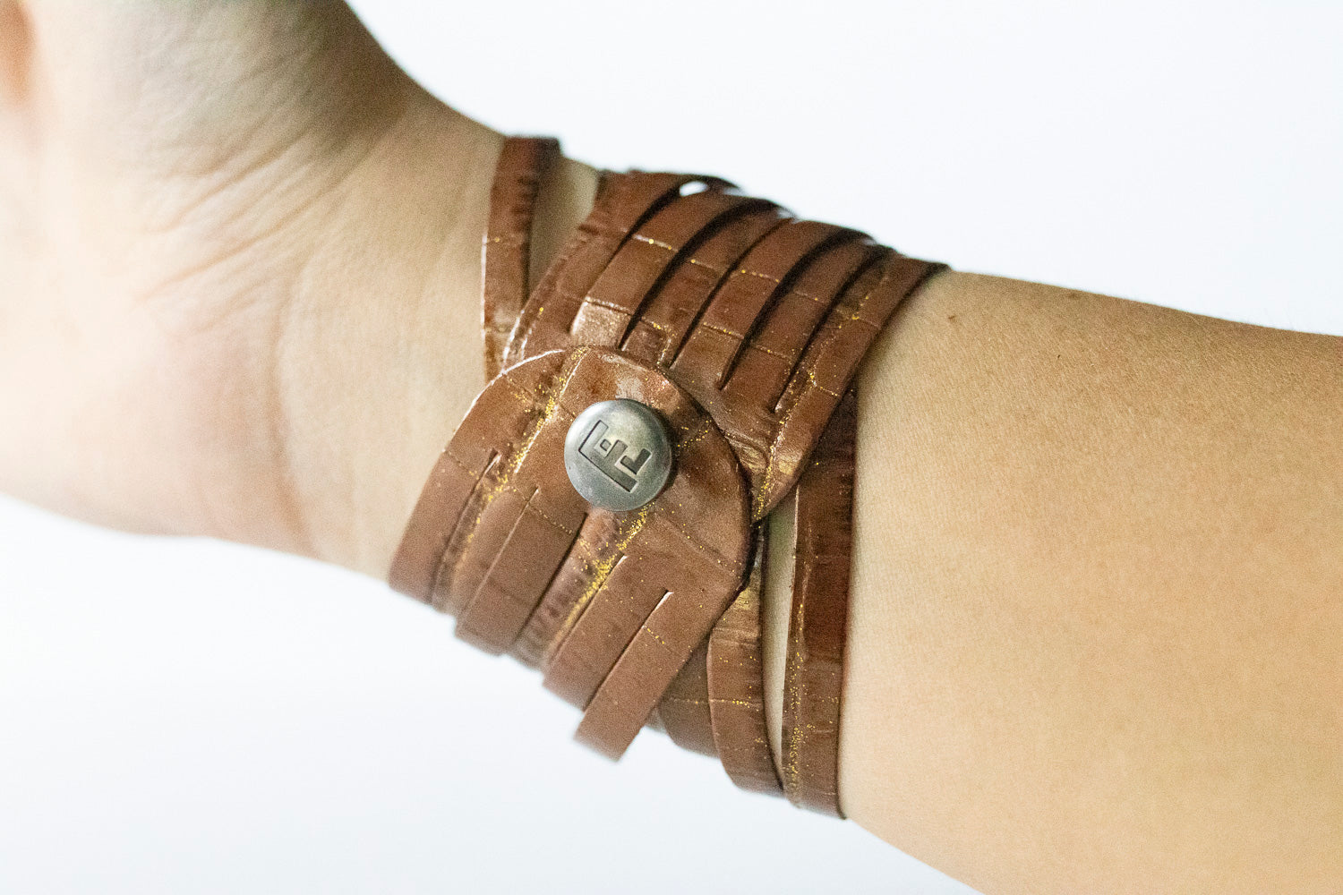 These bracelets will come with a brushed silver FL (Flourish Leather) logo snap.