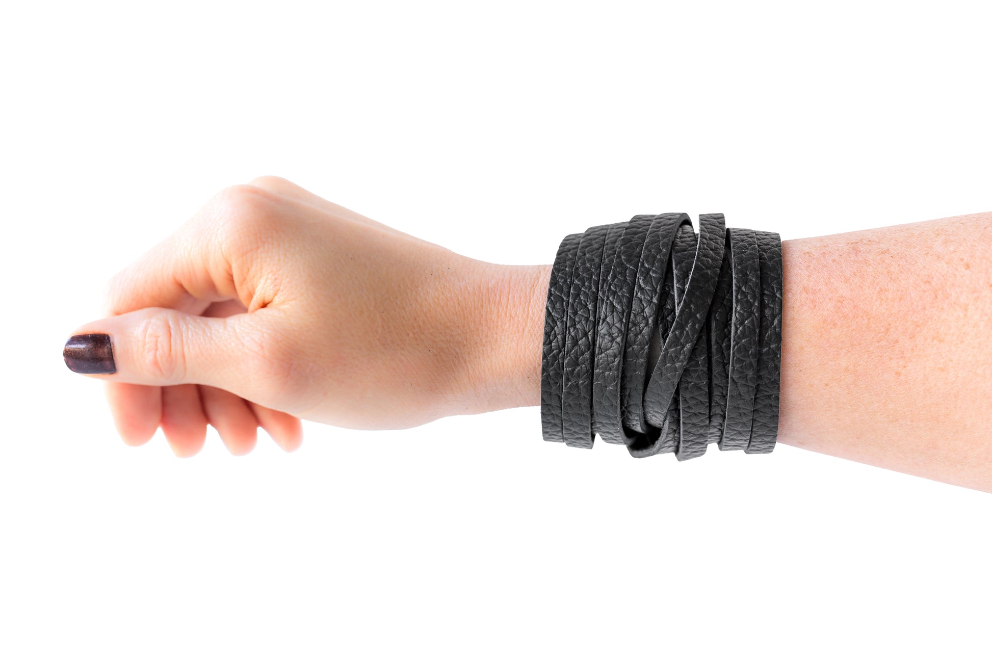 Leather Bracelet / Original Sliced Wrap Cuff / Deep Black