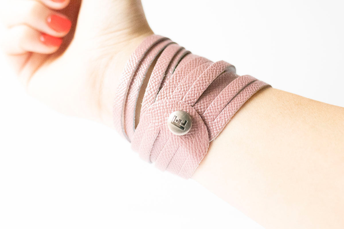 Leather Bracelet / Original Sliced Wrap Cuff / Desert Rose