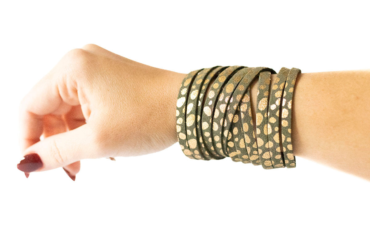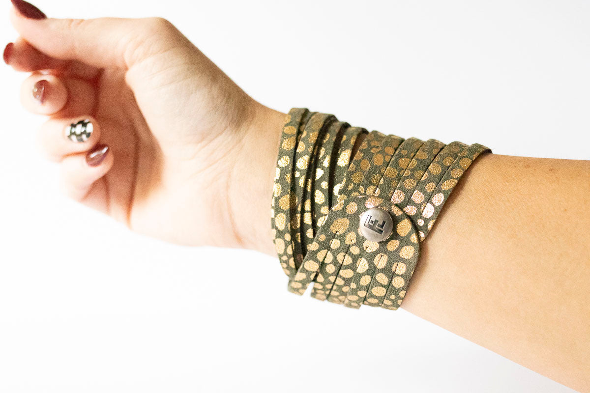 Leather Bracelet / Original Sliced Wrap Cuff / Golden Fern