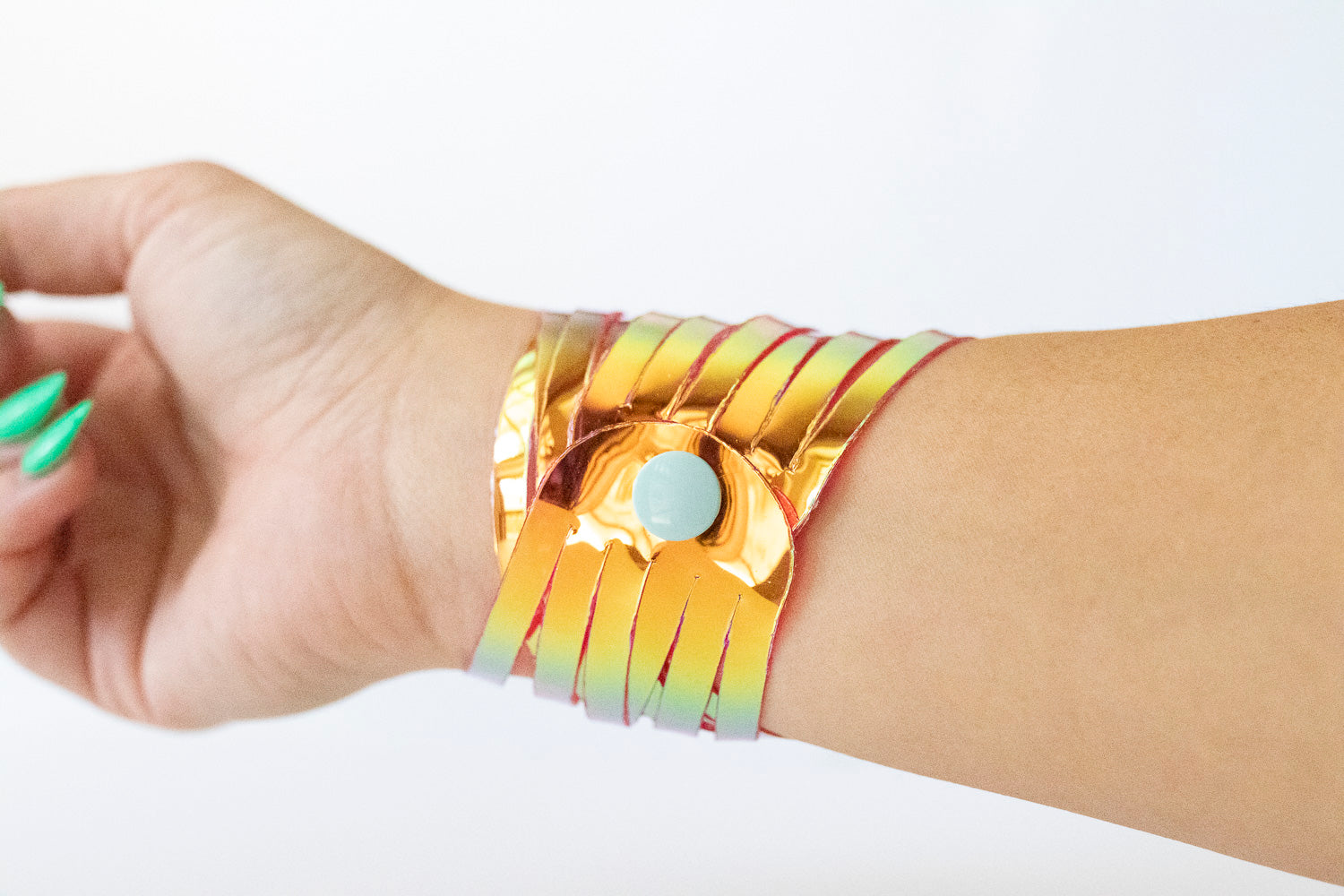 This bracelet is 100% genuine jelly vinyl. Handmade and hand-cut.