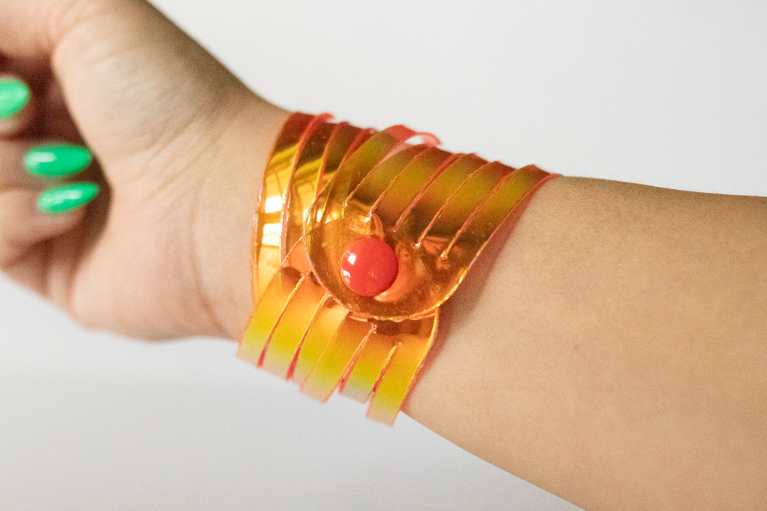 This bracelet is 100% genuine jelly vinyl. Handmade and hand-cut.